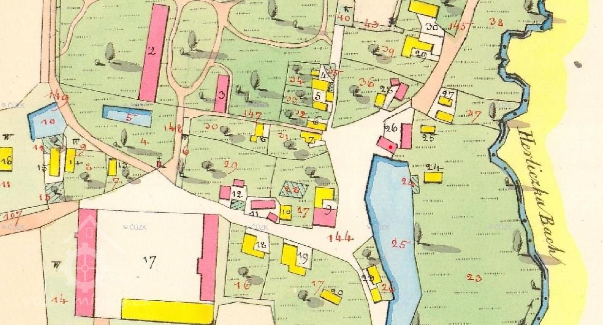 Mlýn je zachycen již na mapě I. voj. mapování.