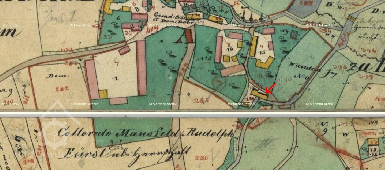 1857 na čp. 14 připomínán výminkář Jan Gärtner s manž. Annou