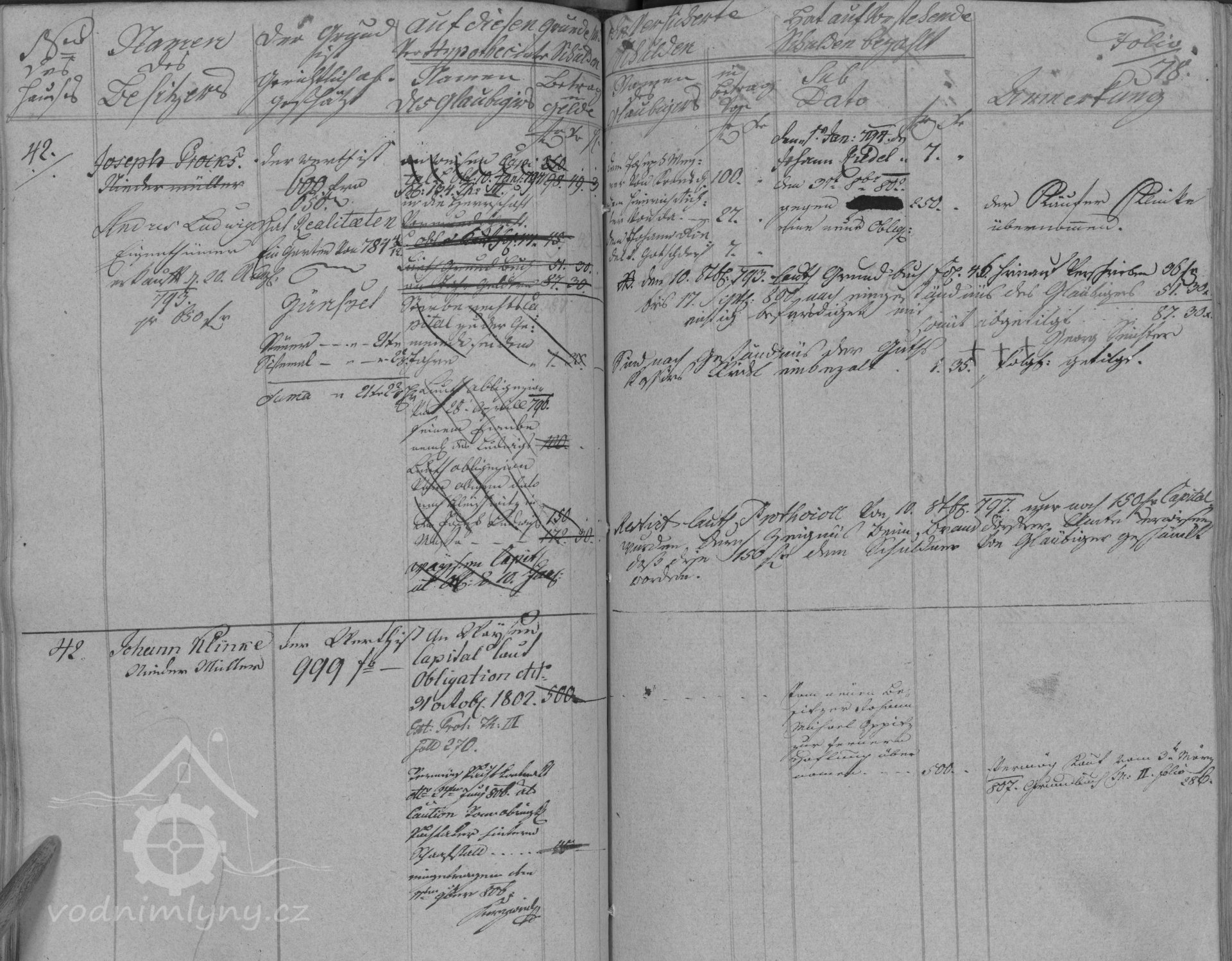 V roce 1793 mlýn vlastní mlynář Joseph Prokš, v roce 1802 mlynář Johann Klinke, v roce 1807 Johann Michael Oppitz, v roce 1808 Ignatz Sebober, v roce 1827 Gregor Gottlieben, v roce 1840 Johann Miler, který mlýn v roce 1843 prodal majiteli panství a velkostatku Henrichu Graf von Arco, který v letech 1842 – 1869 skoupil řadu realit původně poddanských na panství Hošťálkovy, mimo jiné oby mlýny a bělidlo. Roku 1843 vystavěl znovu požárem zničený dvůr v Hošťálkovech.