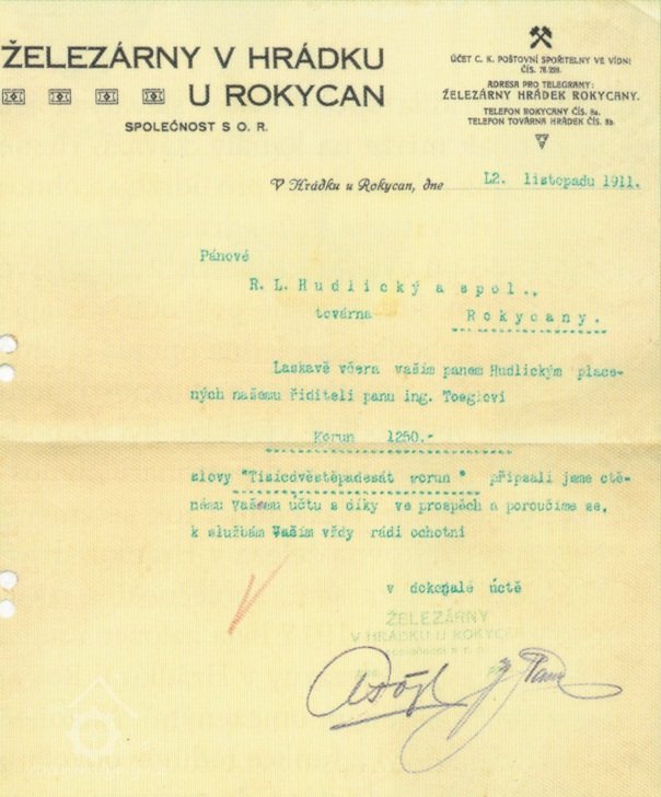Následující rok se změnil název firmy na „Válcovna železa v Hrádku, dříve R. L. Hudlický a Folta sen., společnost s ručeným omezeným“.