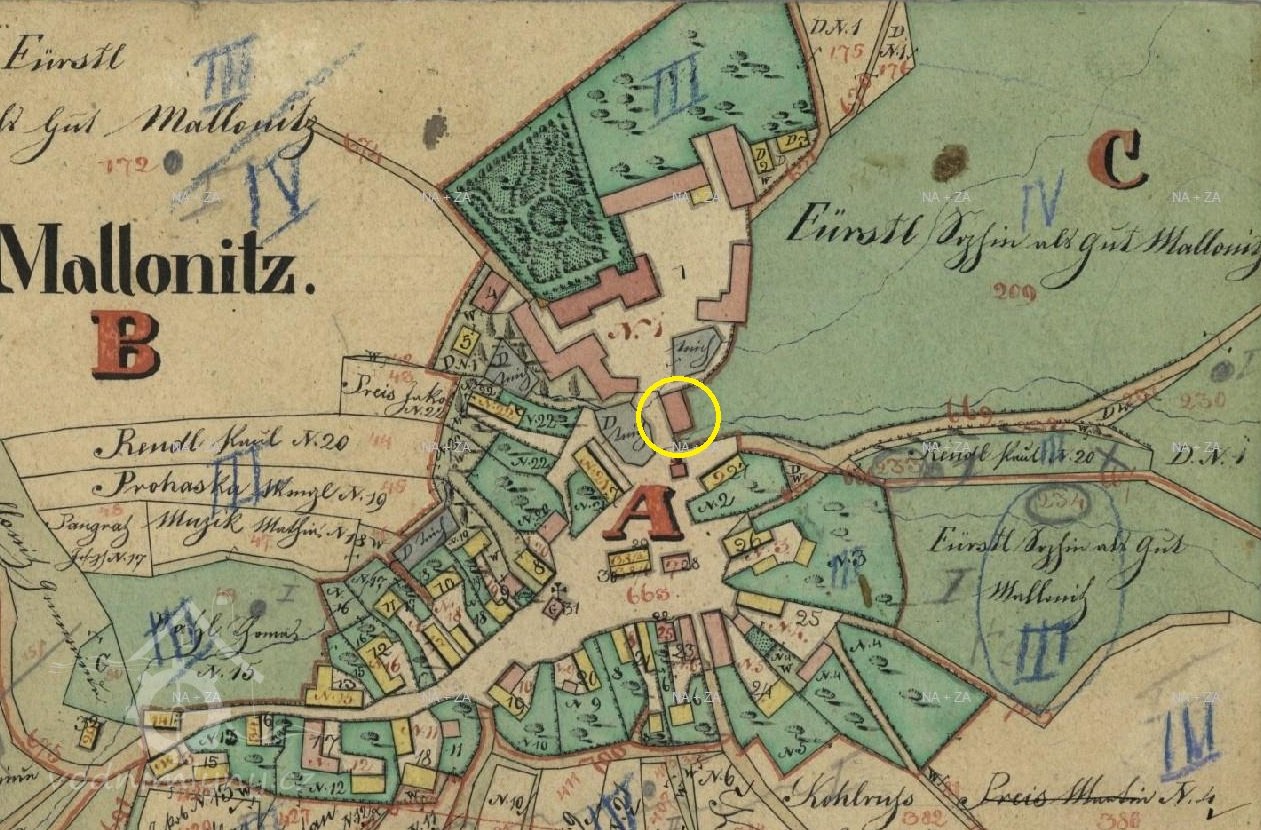 1651 Soupis poddaných podle víry: mlynář Jiřík N. (28 let), žena Kateřina (24), oba cizopanští katolíci, syn Jiřík (1/4), poddaný