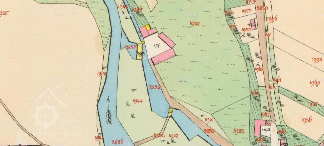 Na konci 18. stol. zde mlynařil Václav Pokorný, jehož vdova Kateřina prodala v roce 1806 mlýn s příslušenstvím a pilou se zahradou, lukami a polmi Josefu Karabáčkovi za 31.000 zl.