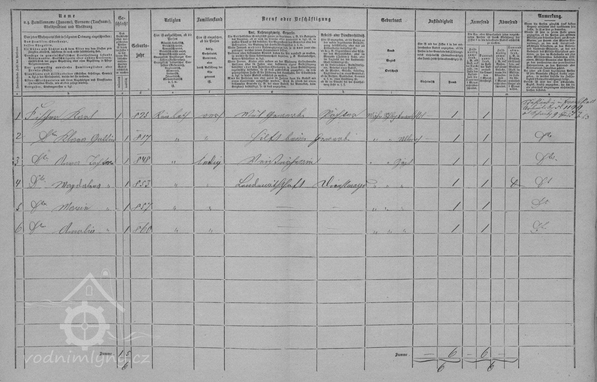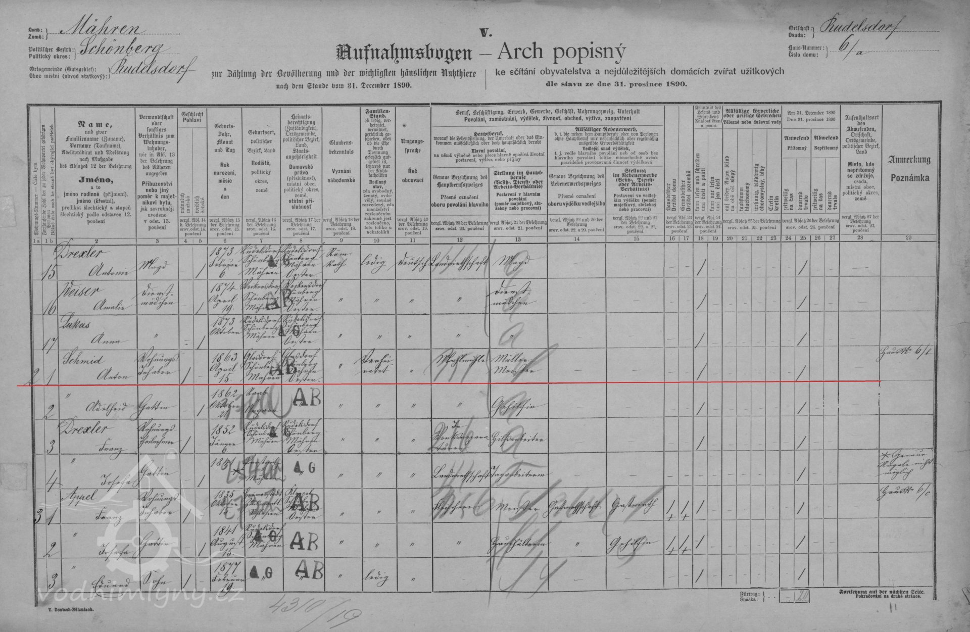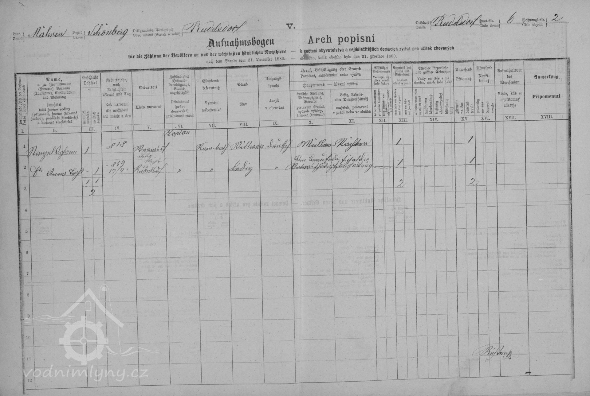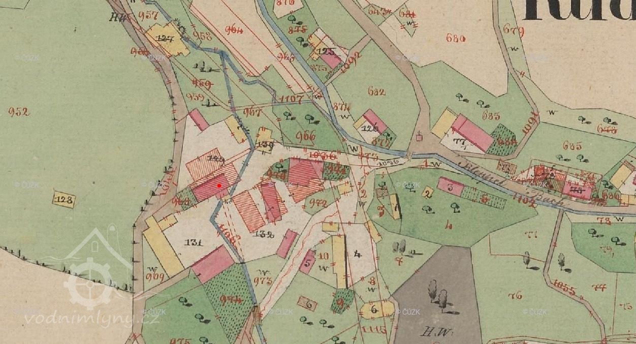 V roce 1880 mlýn provozuje mlynář Johann Hanzel nar. 1818, který je nájemcem mlýna, celé hospodářství bylo rozděleno na několik samostatných bytů, mlýn je označen jako byt č. 2.