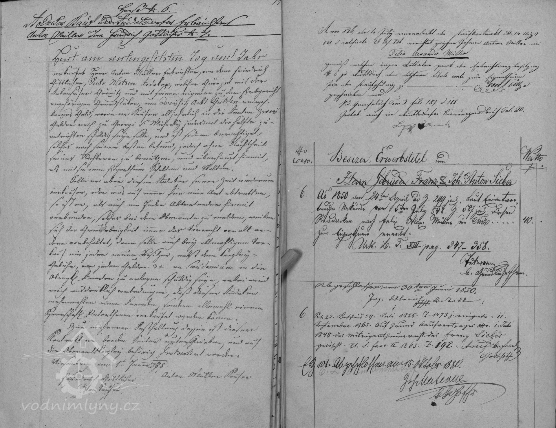 V roce 1851 kupuje rychtu s mlýnem a dalšími provozy Johann Anton Sieber nar. 1823, který mlýn se sousední bělírnou přestavěl a následně doplnil o další tovární budobu pro zpracování lněného a bavlněného zboží.
