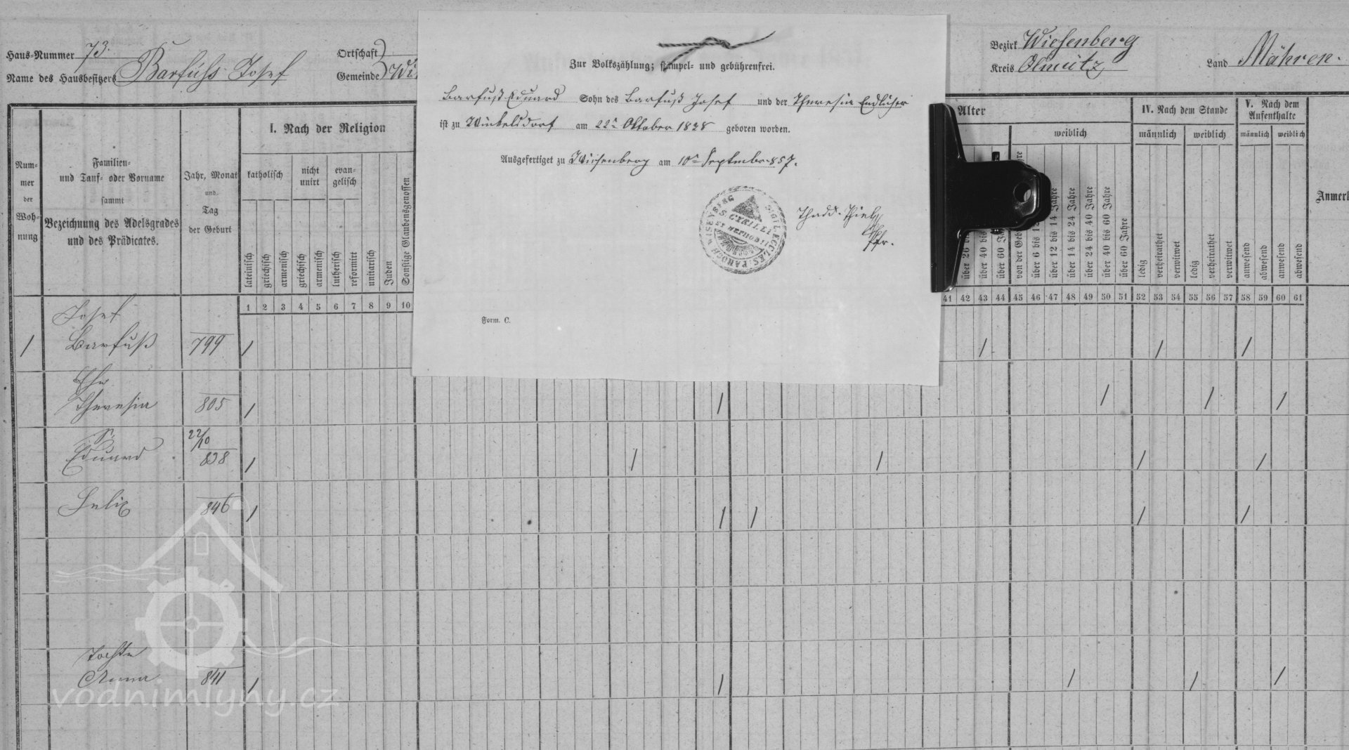 V roce 1857 mlýn vlastní Jozef Barfus, v roce 1869 mlýn zůstává v majetku Barfůsů, ovšem provozovatelem je mlynář Johann Groger, který má mlýn v pronájmu.