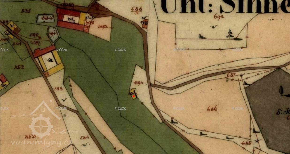 Na mapě stabilního katasru z roku 1872 je parcela přeškrtnutím zrušená, mlýn tedy zanikl kolem poloviny 19. století, na mapě pozemkového katastru již zakreslen není.