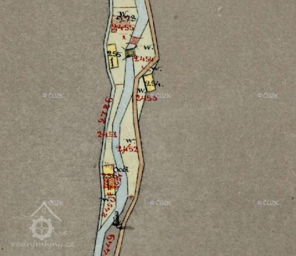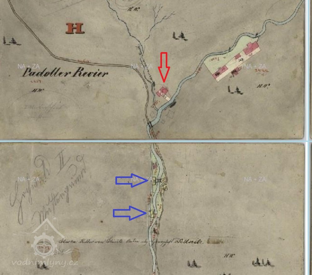 1840 mlýn ještě nestál, stály obě pily v majetku Antonína rytíře Sliwky ze Sliwitz, držitele solnického panství