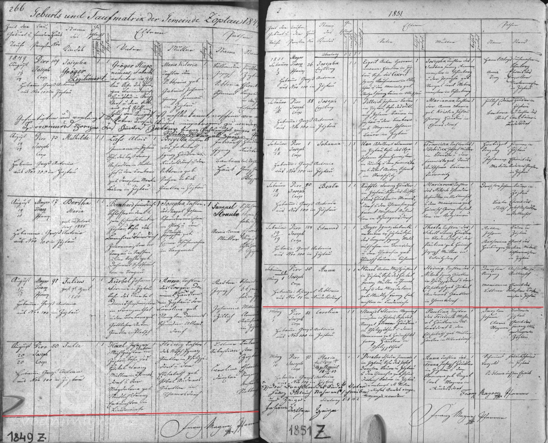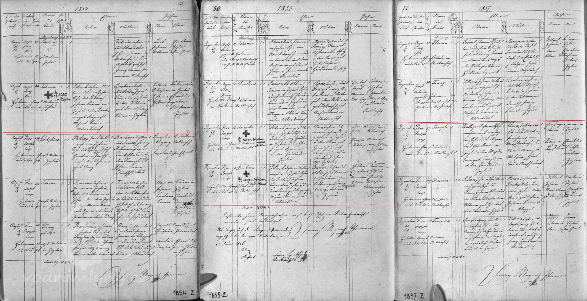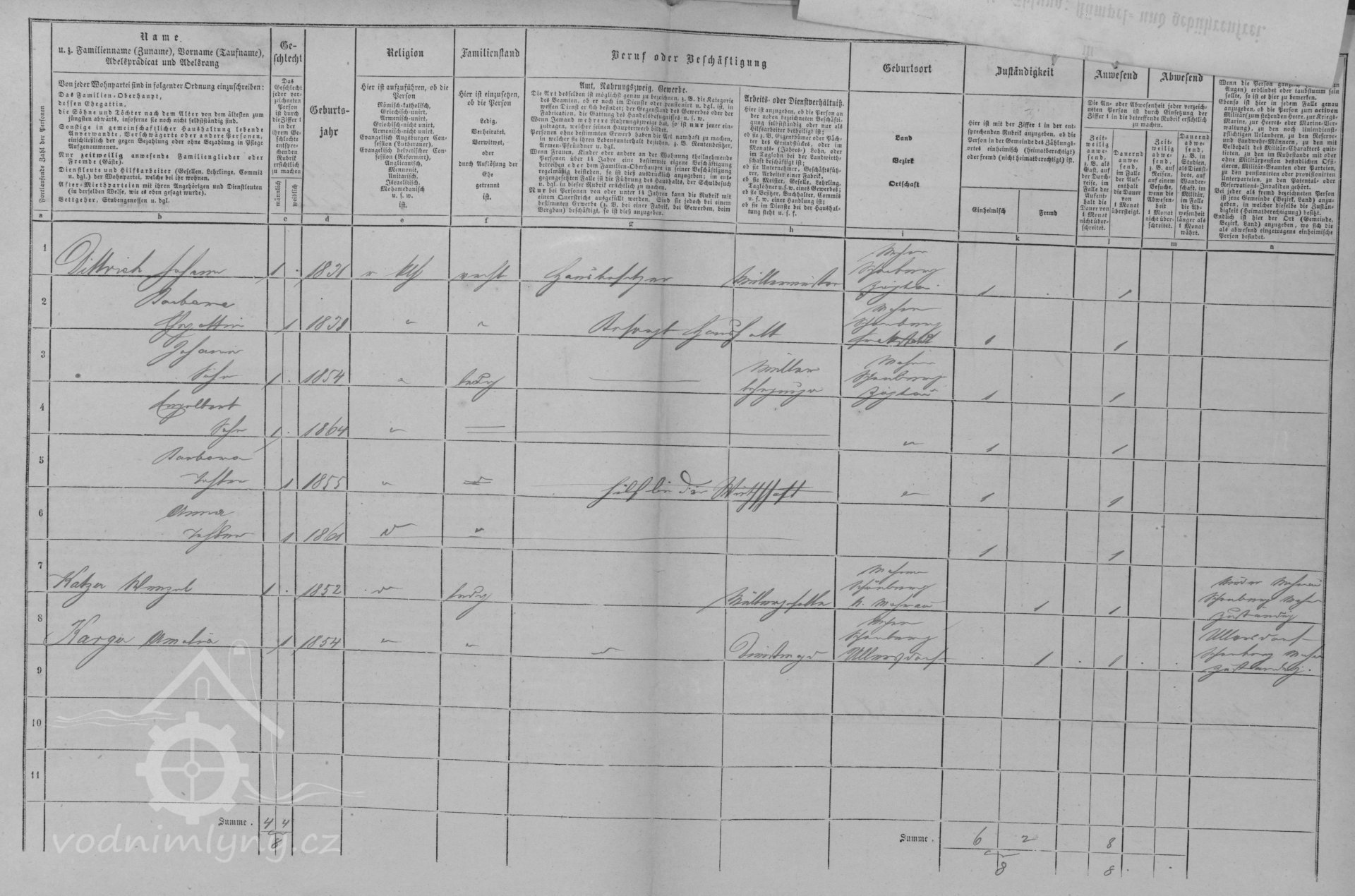 V roce 1854 - 1880 mlýn vlastní mlynář Jahann Dittrich nar. 1831, manželka Barbara nar. 1831, v roce 1854 se jim narodil syn Johann, v roce 1855 dcera Barbara, v roce 1857 syn Franz, v roce 1958 syn Joseph, v roce 1860 syn Franz, v roce 1861 dcera Anna, v roce 1864 syn Engelbert.