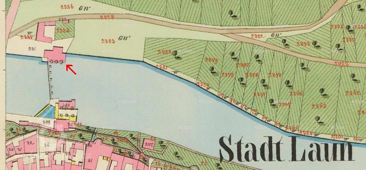 1632 společně s ostatními lounskými mlýny zastaven Janu Jakubu Juffeldovi za sumu 3000 kop, dlužná částka brzy vzrostla na 8000 kop