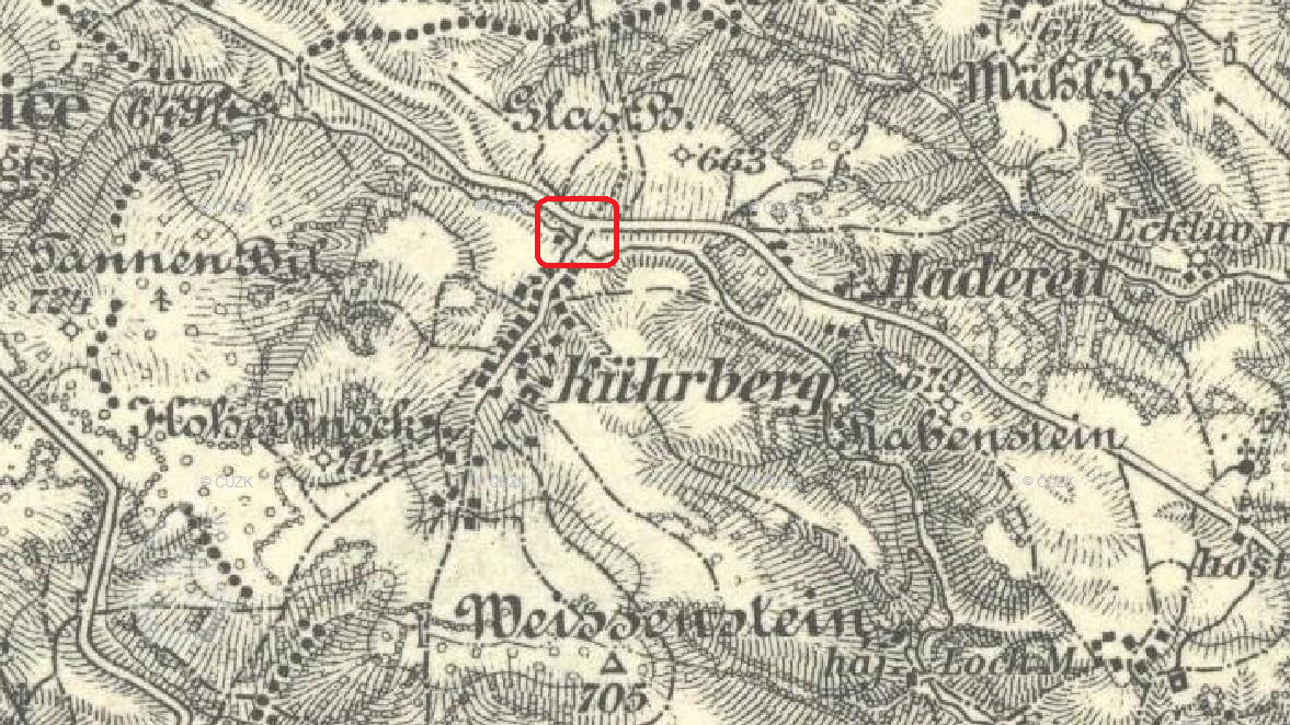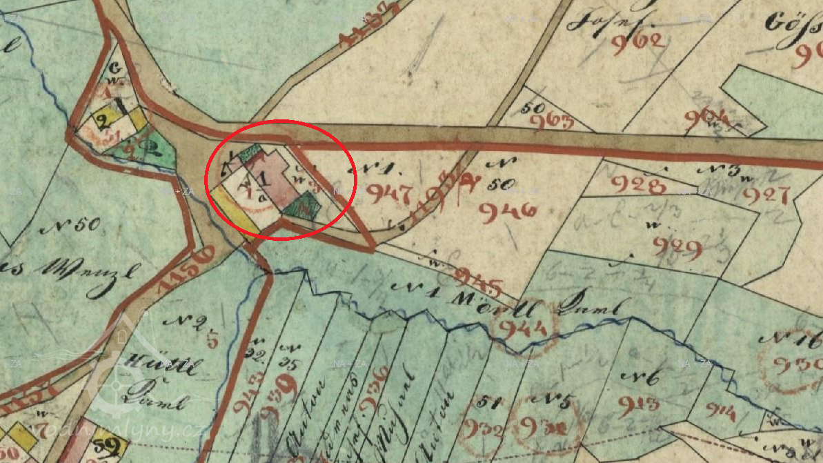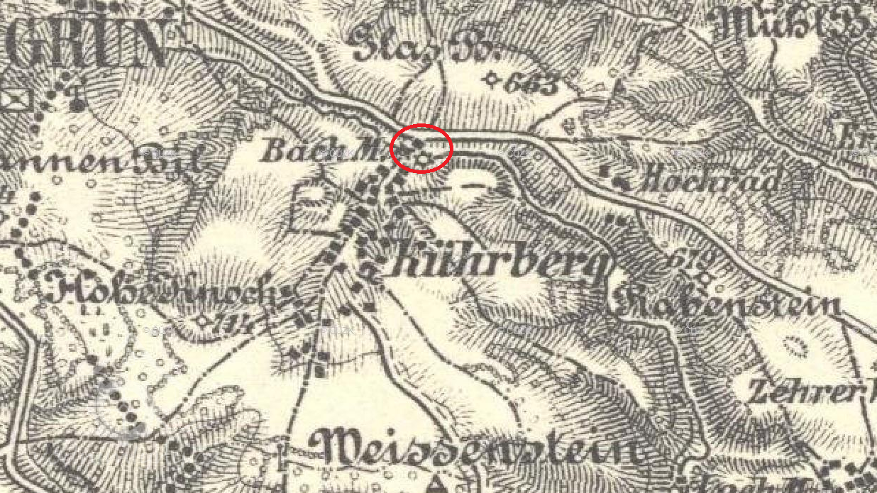 Mlýn vyznačen na mapě III. vojenského mapování, aktualizace z roku 1911. Na dalších mapách už vyznačen jako mlýn není.