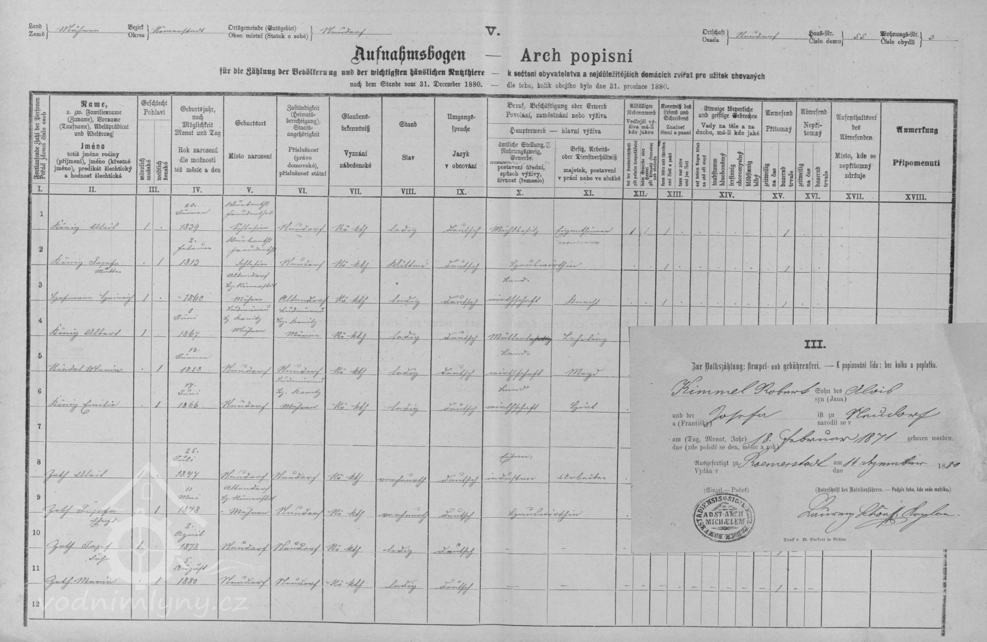 V roce 1880 mlýn vlastní Alois König nar. 1839.