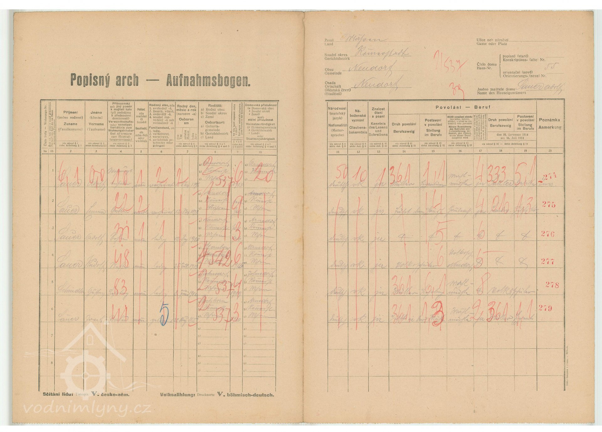 V roce 1921 mlýn vlastní mlynář Adolf Sauer, nar. 1896, s manželkou nar. 1898 měli syny Adolfa a Rudolfa.