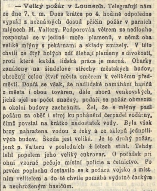 Požár mlýnů 7. května 1895, majitel Matěj Valtera. (RR)