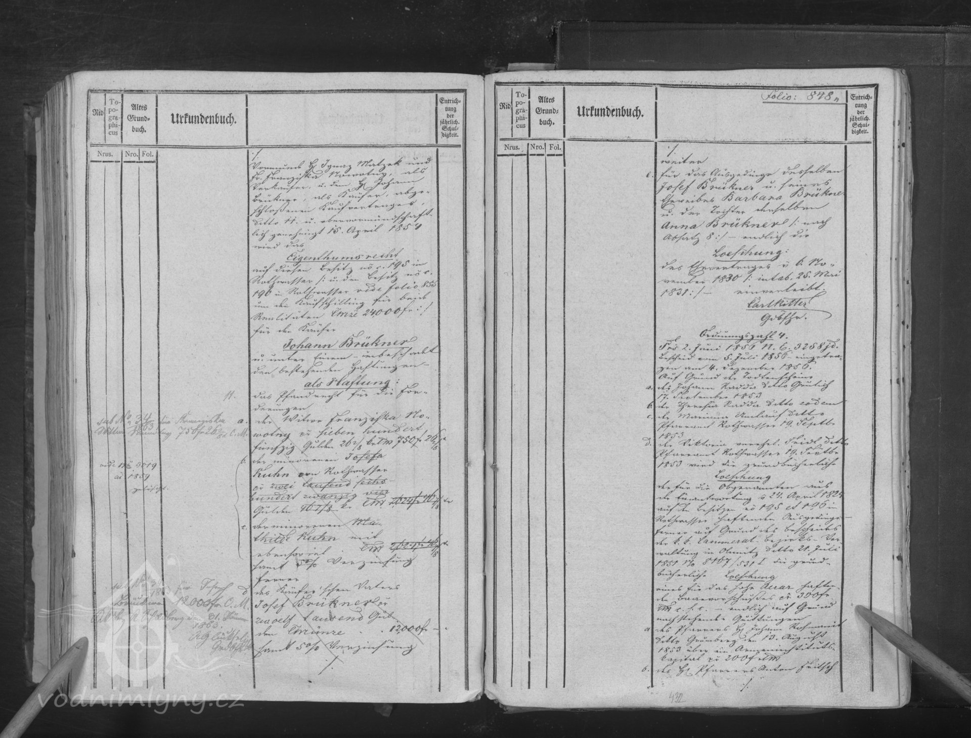 V roce 1857 a 1869 mlýn vlastní Johann Brükner, nar. 1834, který bydlí v sousedním domě čp. 196, mlýn provozuje mlynář Jozef Rosenberger, nar. 1842, který je zde v nájmu.