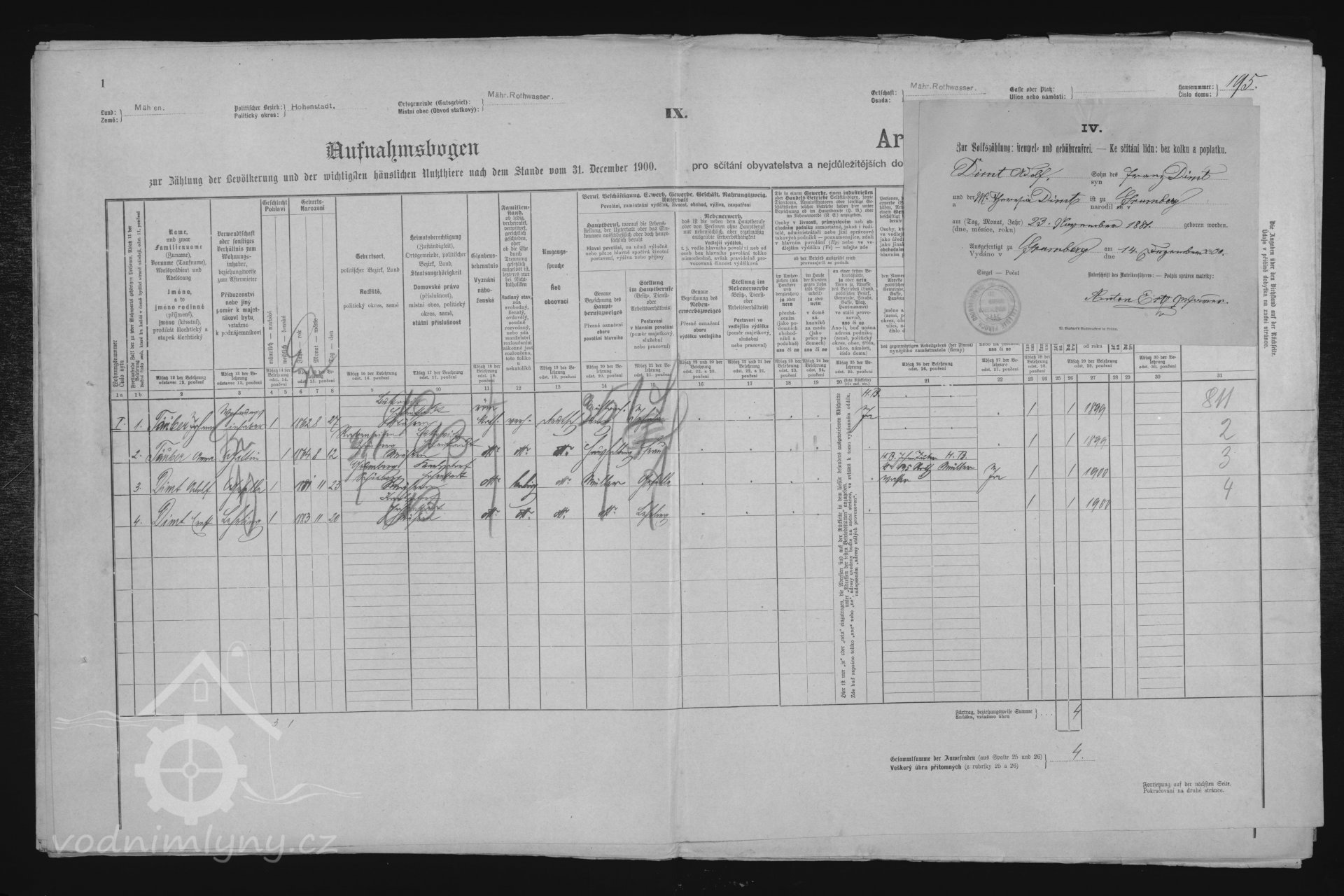 V roce 1900 mlýn vlastní Johann Täuleer, nar. 1862, mlýn provozuje mlynář Adolf Dimt.