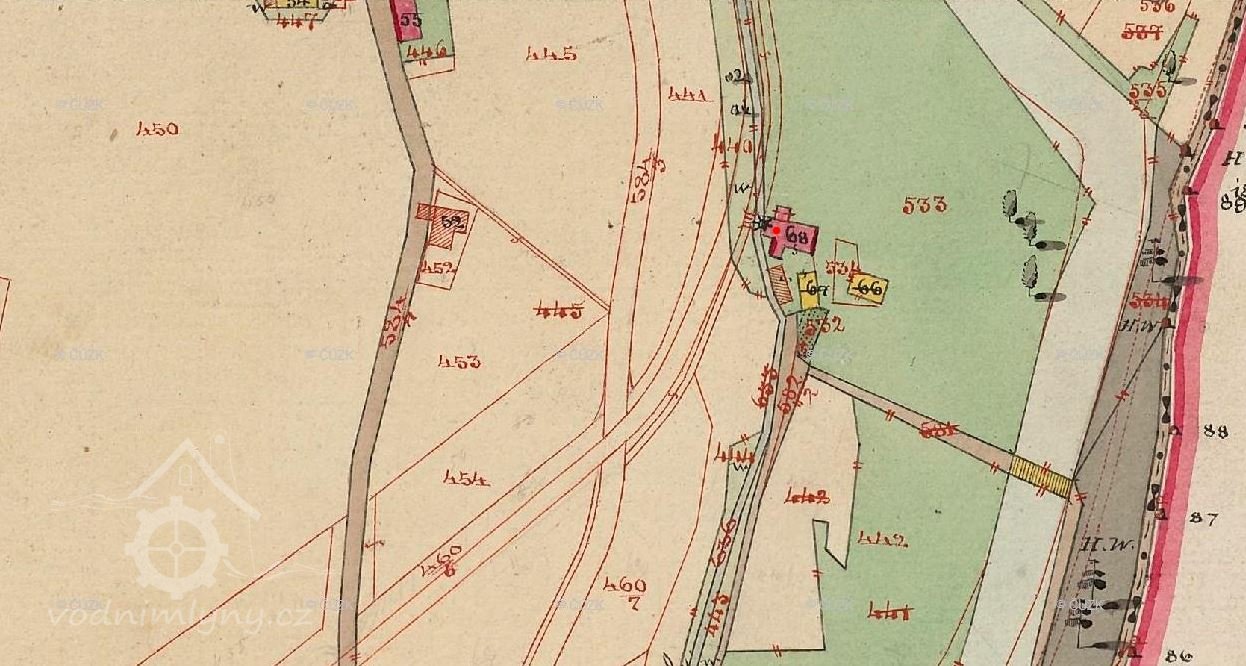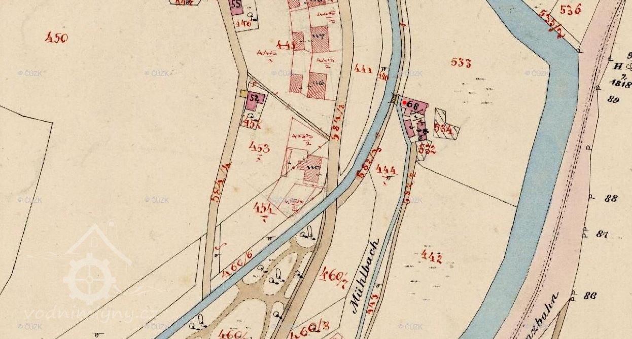 Mlýn je zachycen již na mapě I. voj. mapování.