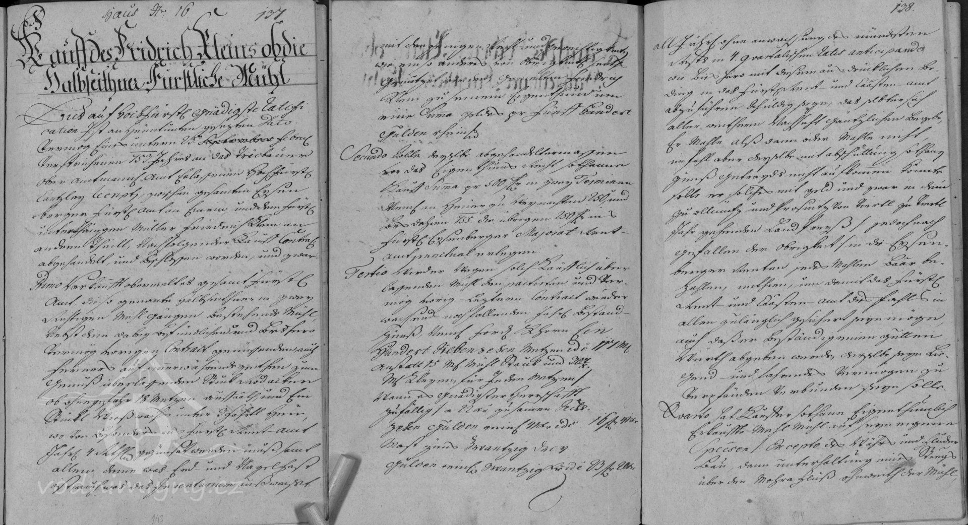 V gruntovní knize je zápis vztahující se k roku 1753, kdy mlýn vlastní Fridrich Klein, poté v roce 1767 Franz Klein.