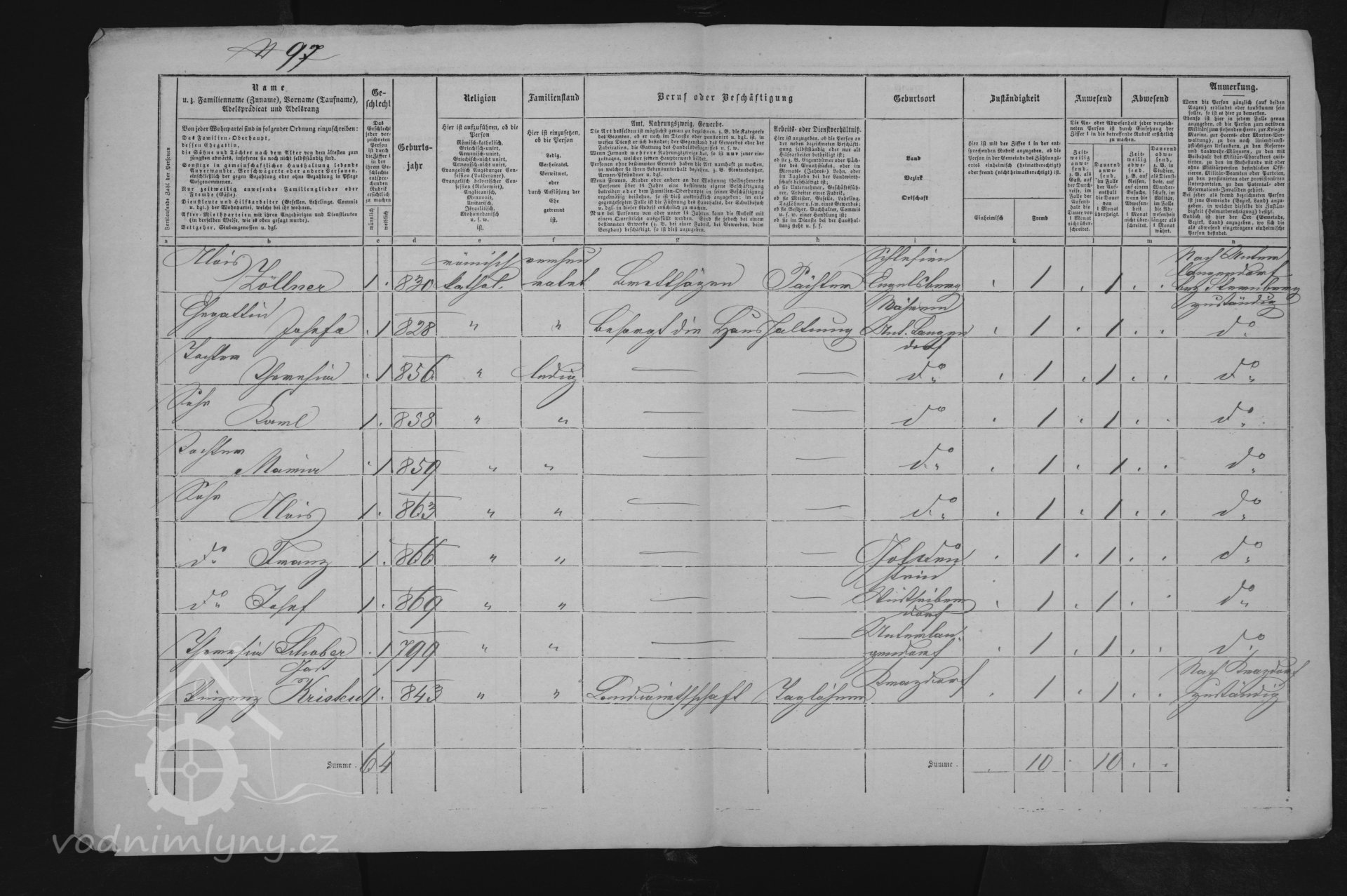 V roce 1869 mlýn s pilou vlastní Alois Zöllner (nar. 1832) a Josefa Zollner(nar. 1830), mlýn provozuje mlynář Frranz Göttlicher.