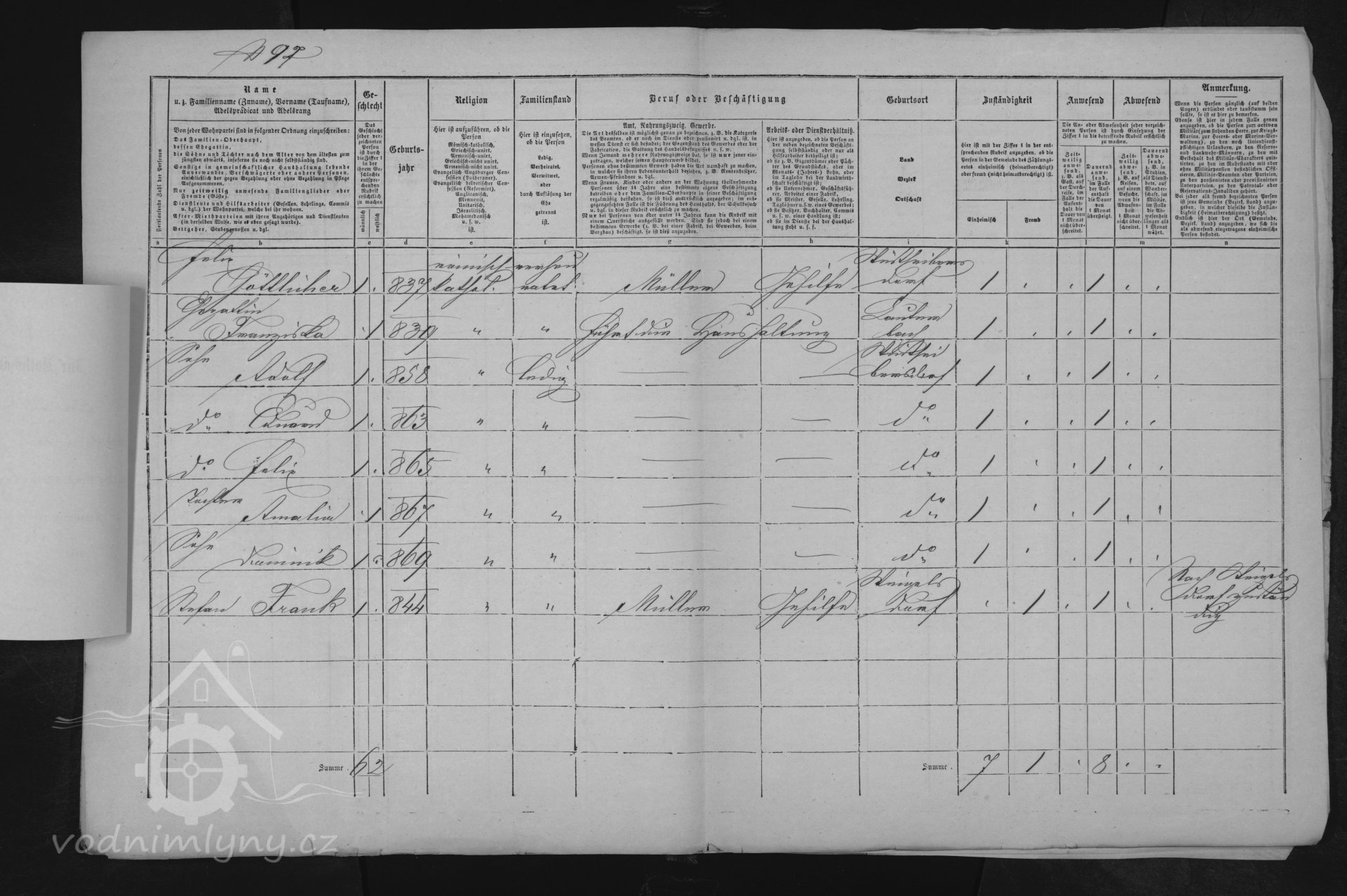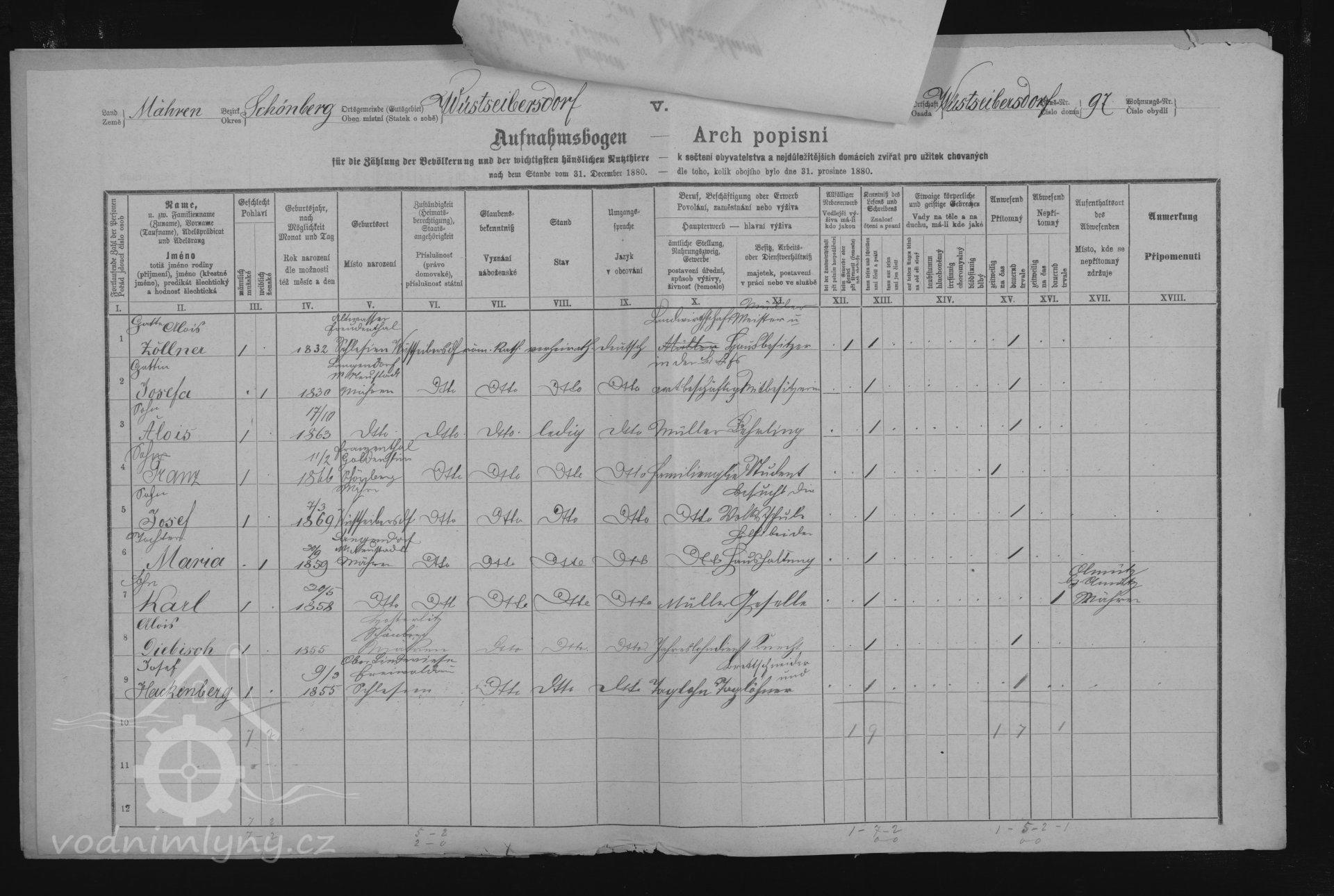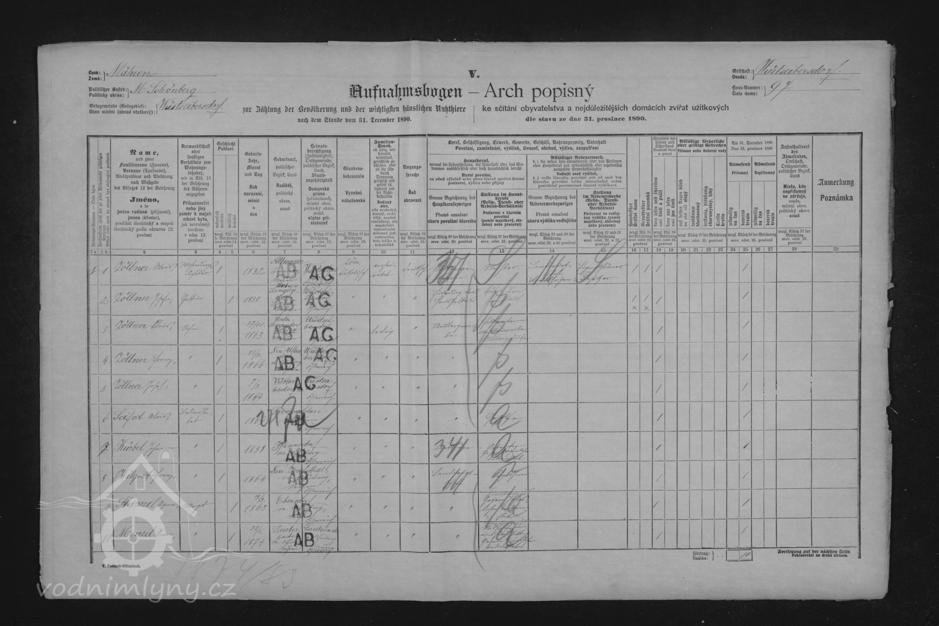 V roce 1880 mlýn provozuje Alois Zöllne, s ním ve mlýně jako mlynáři pracují synové Alois (nar. 1863) a Karl (nar. 1858).