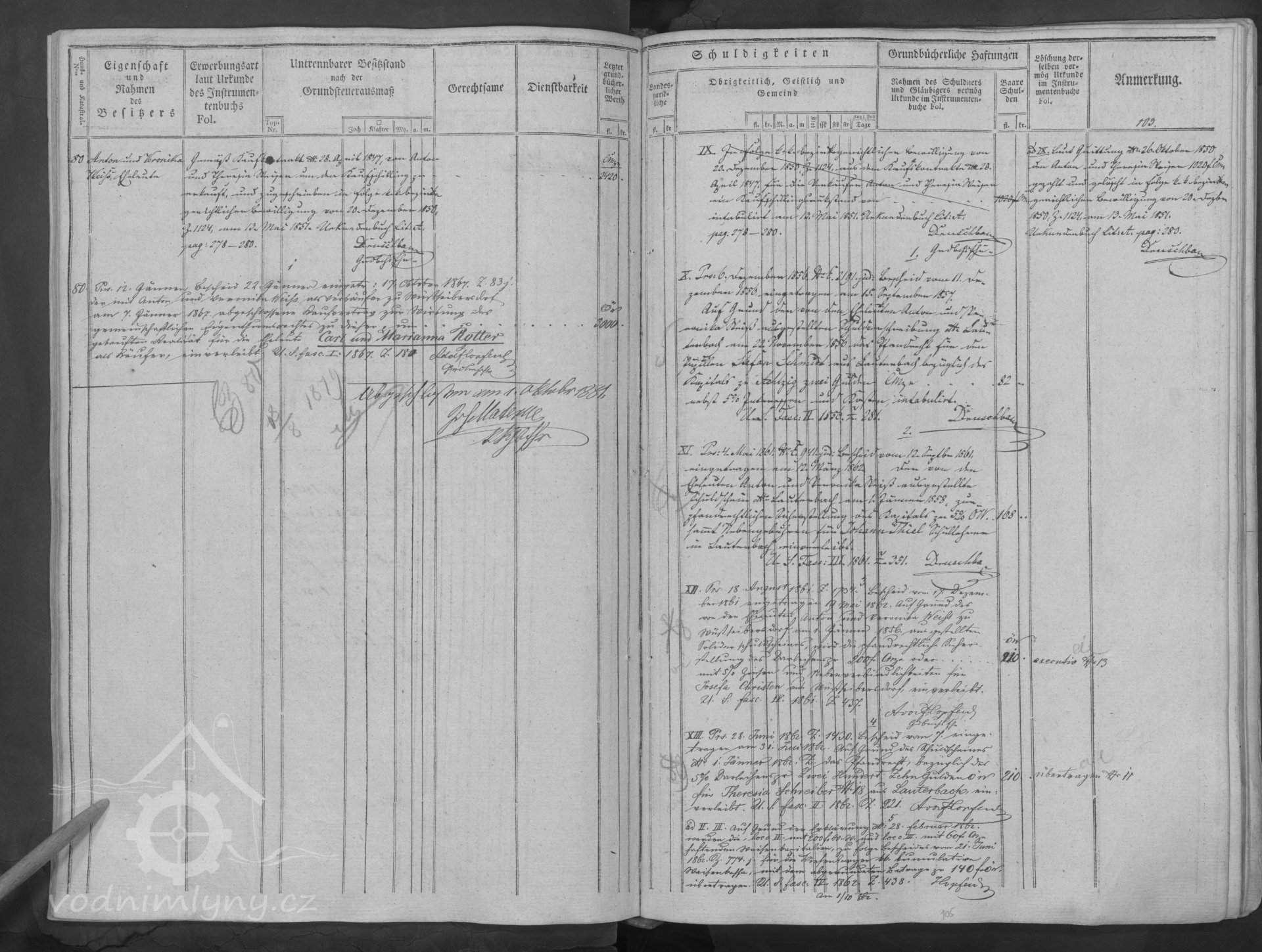 V roce 1860 mlýn vlastní mlynář Anton Weiser.