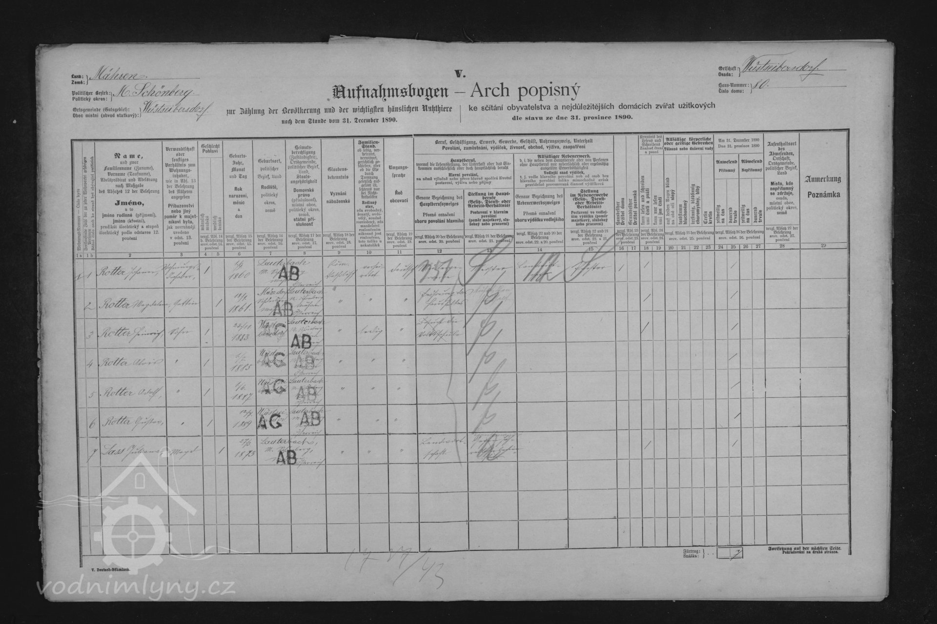 V roce 1890 se v usedlosti čp. 80 mlýn již neuvádí vlastníkem je Johann Rotter (nar. 1860), manželka Magdalena (nar. 1861), .