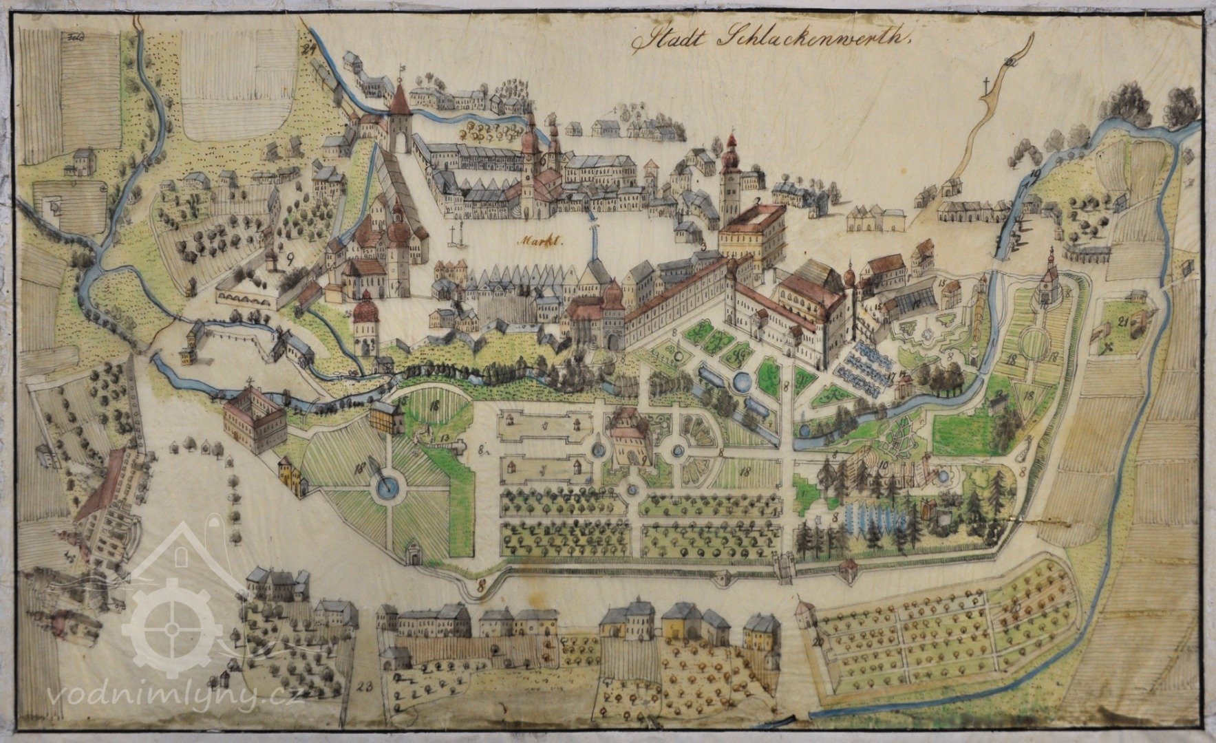 Veduta, ručně malovaná mapa