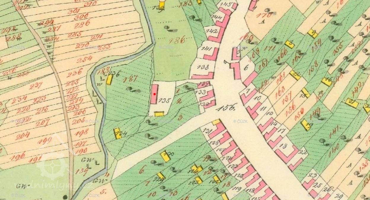 Mlýn je zachycen již na mapě I. voj. mapování.