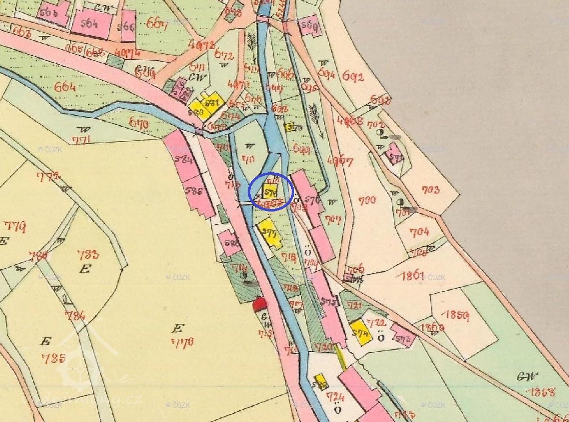 1894 vyvlastněna část parcely pro stavbu dráhy Ostrov - Jáchymov