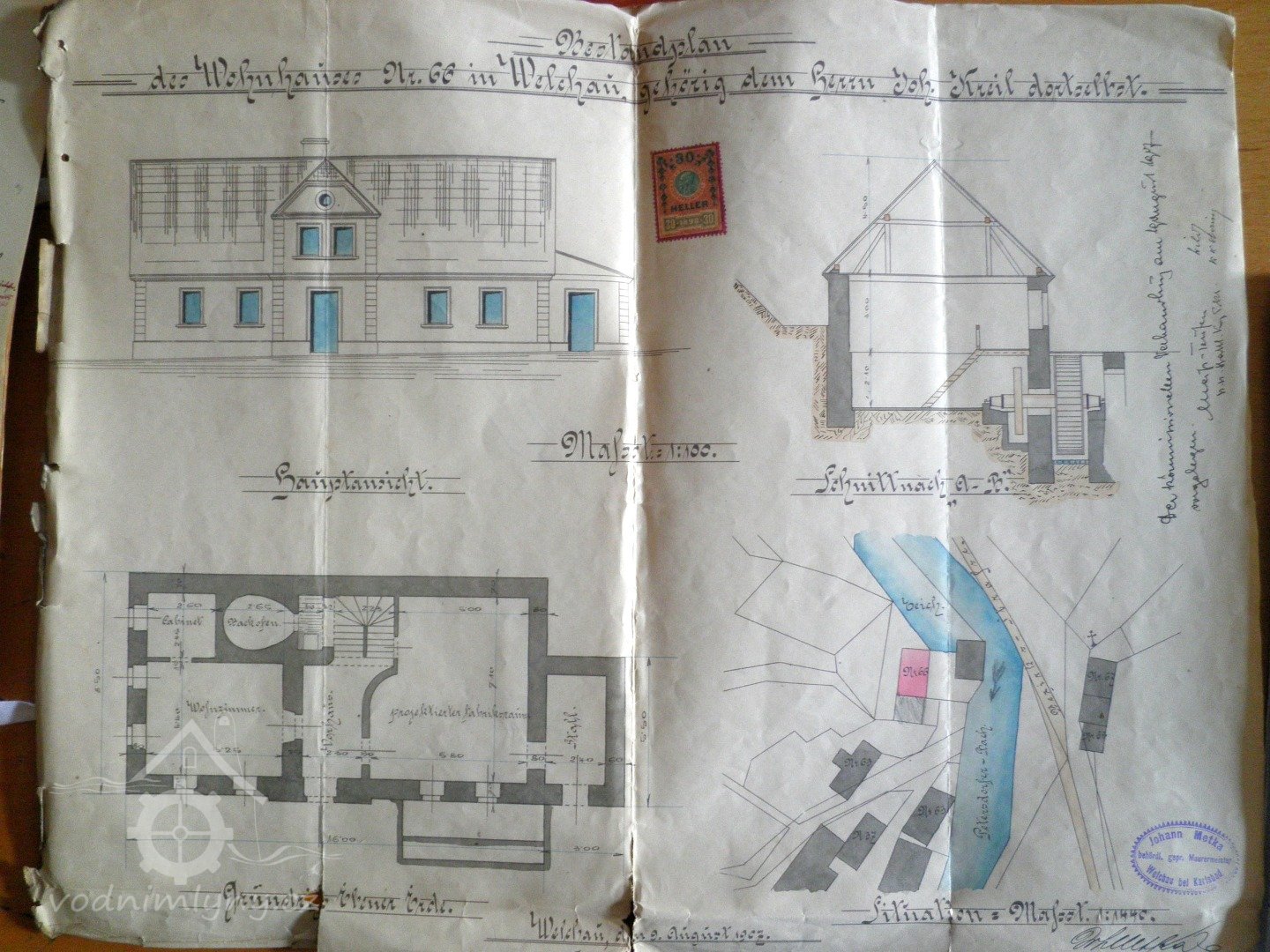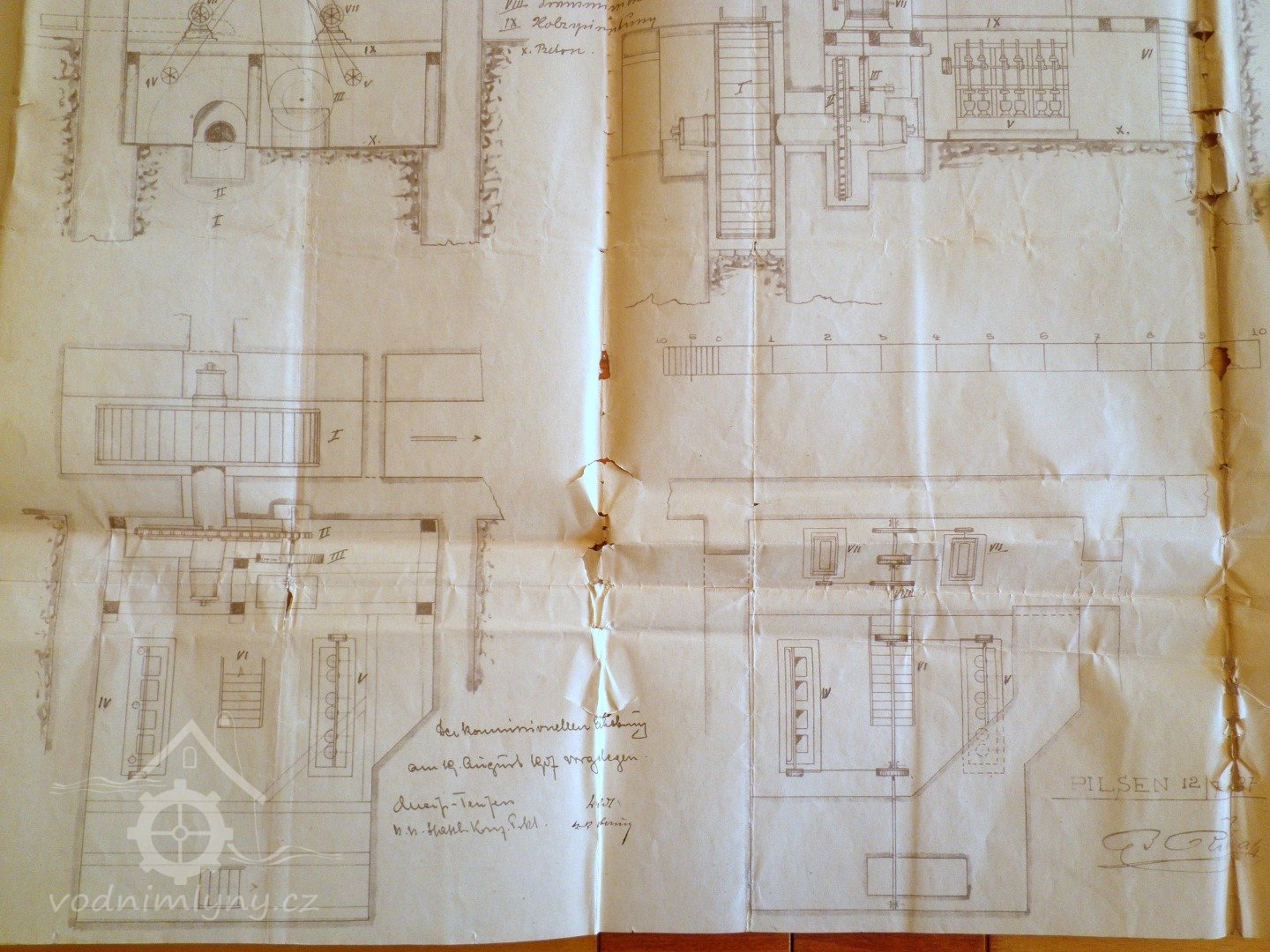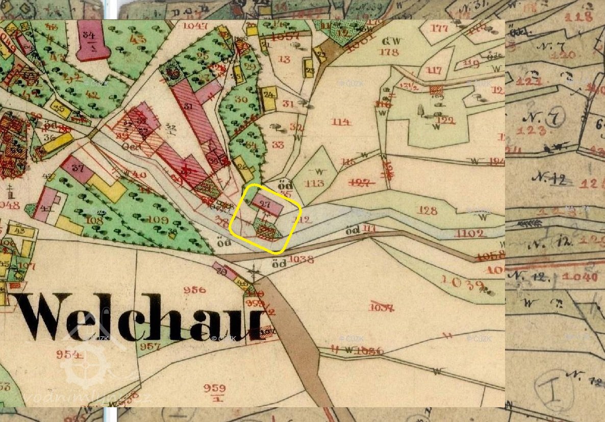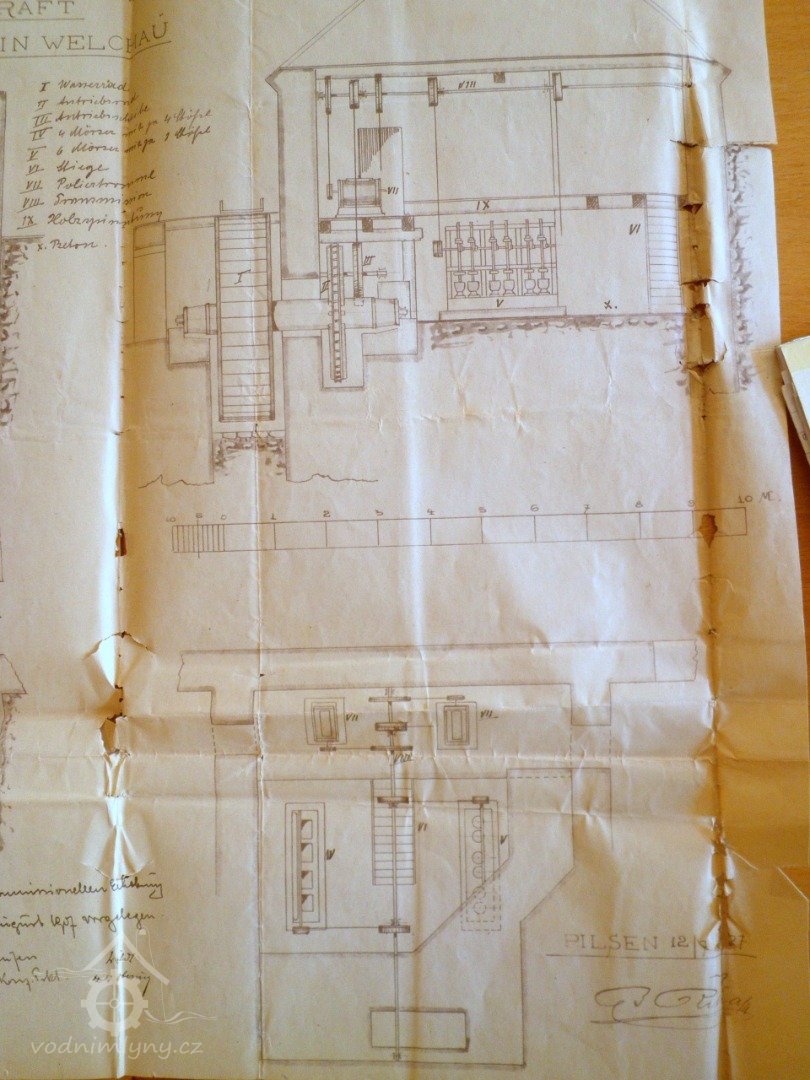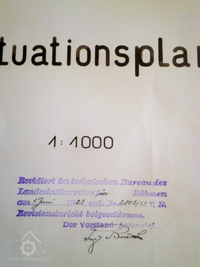 Jak je patrné z přiložených plánů v kopii, vodní kolo a hnací kola ze starého mlýna zůstala zachována a ani na vodním toku nebyla provedena sebemenší změna.