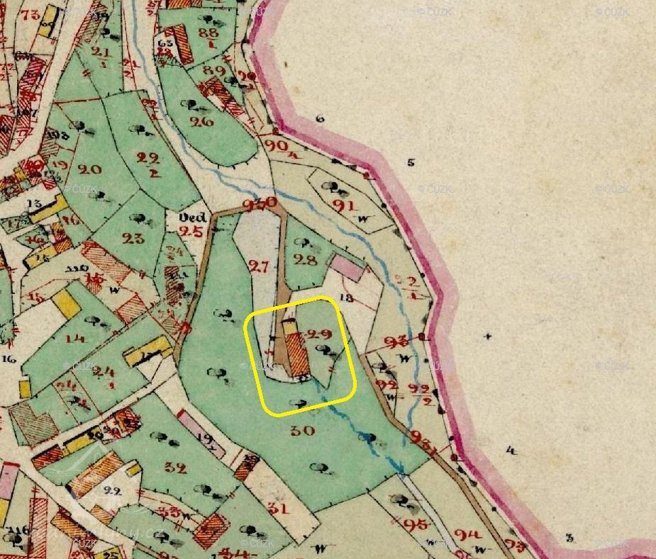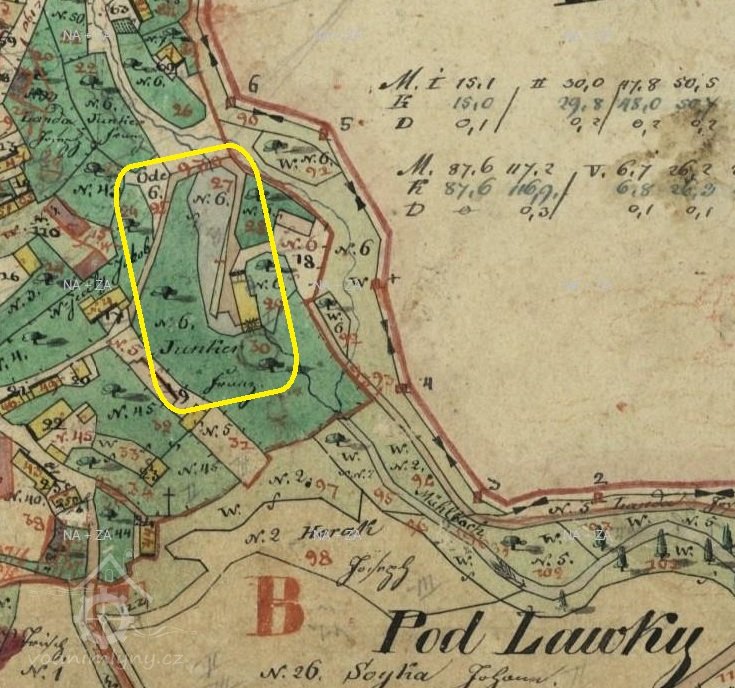1654 Berní rula: Jan Pařez, mlejn pustej na 1 kolo, 120 str. rolí, 4 potahy, 4 ks hov. dobytka, 3 svině
