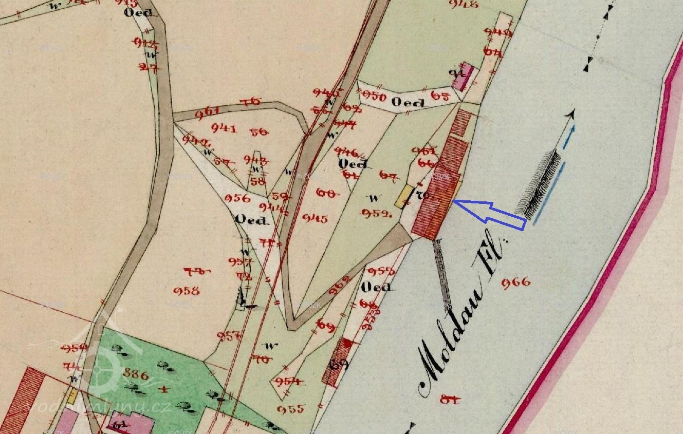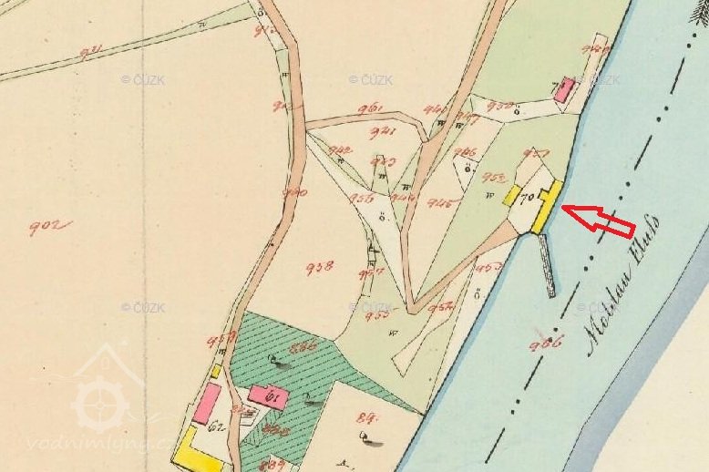 1930: 1 kolo na spodní vodu, hltnost 14,2 m3/s, spád 3,5 m, výkon 20 HP
