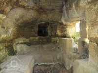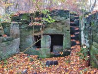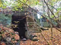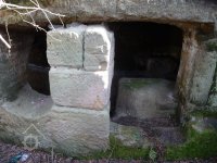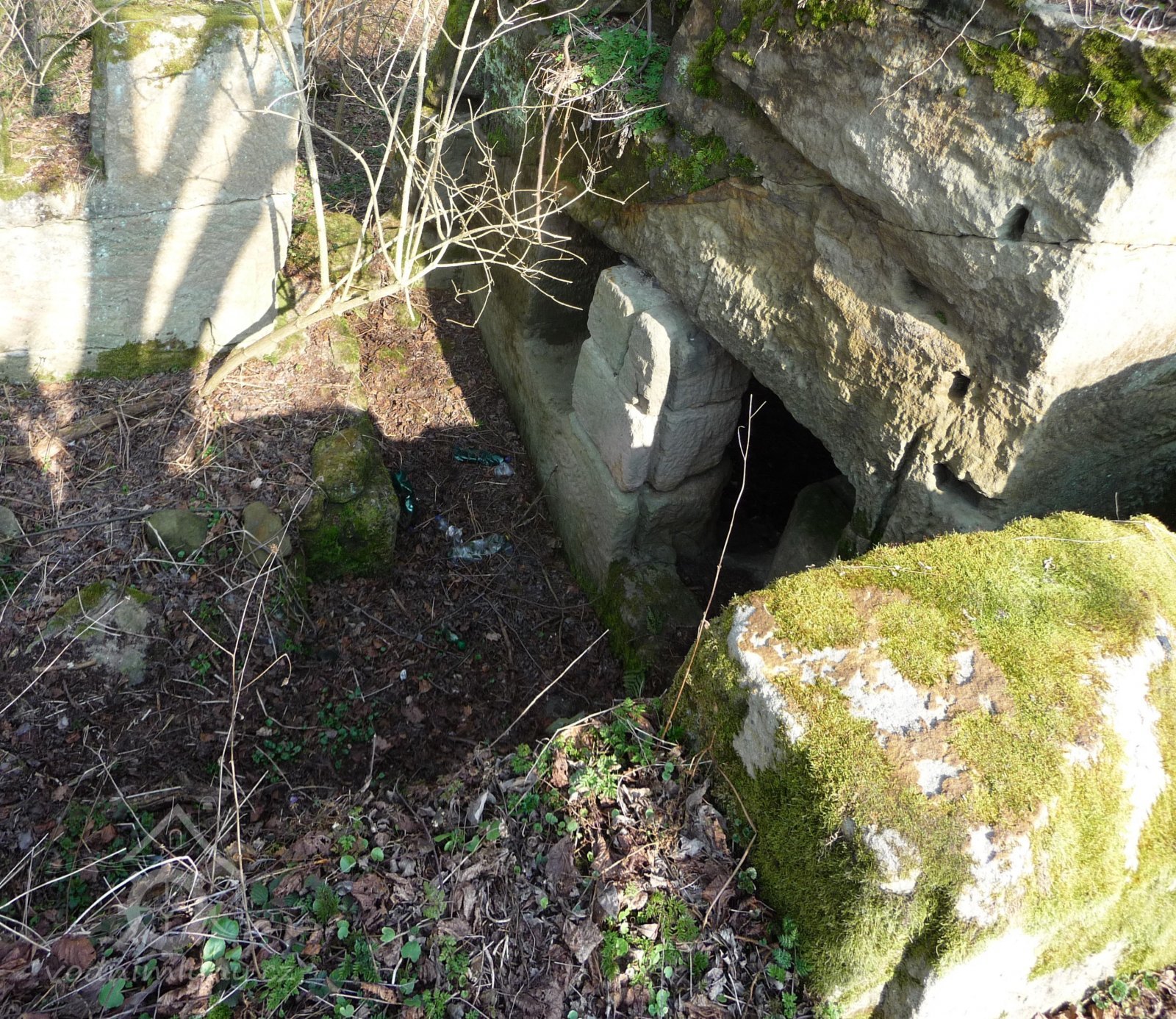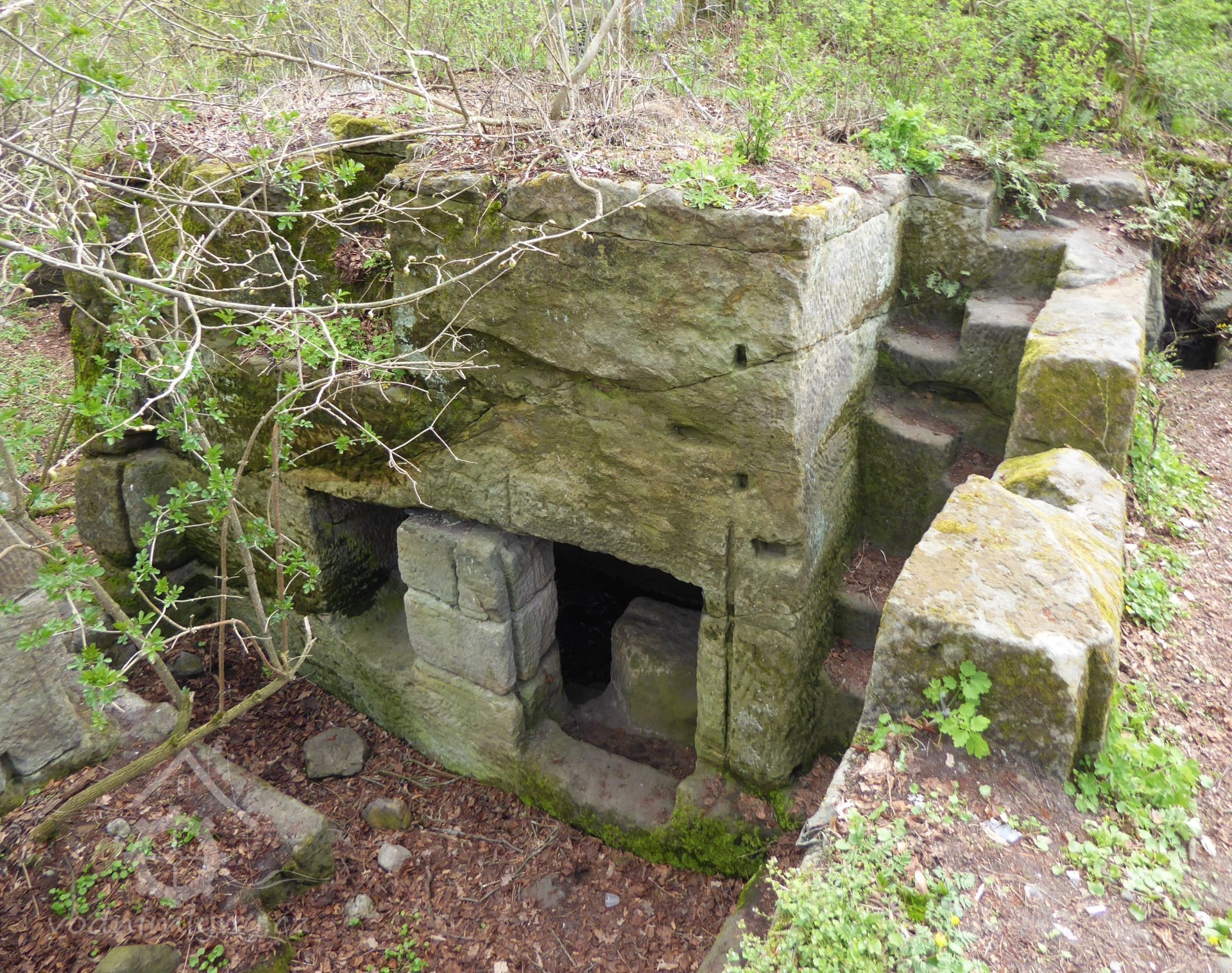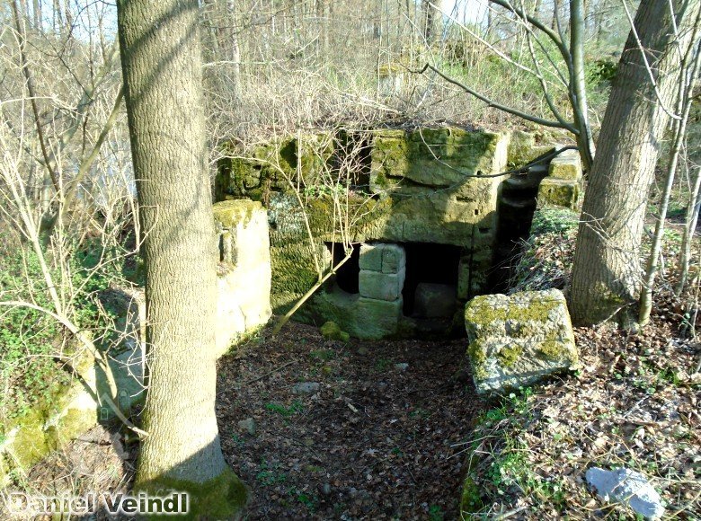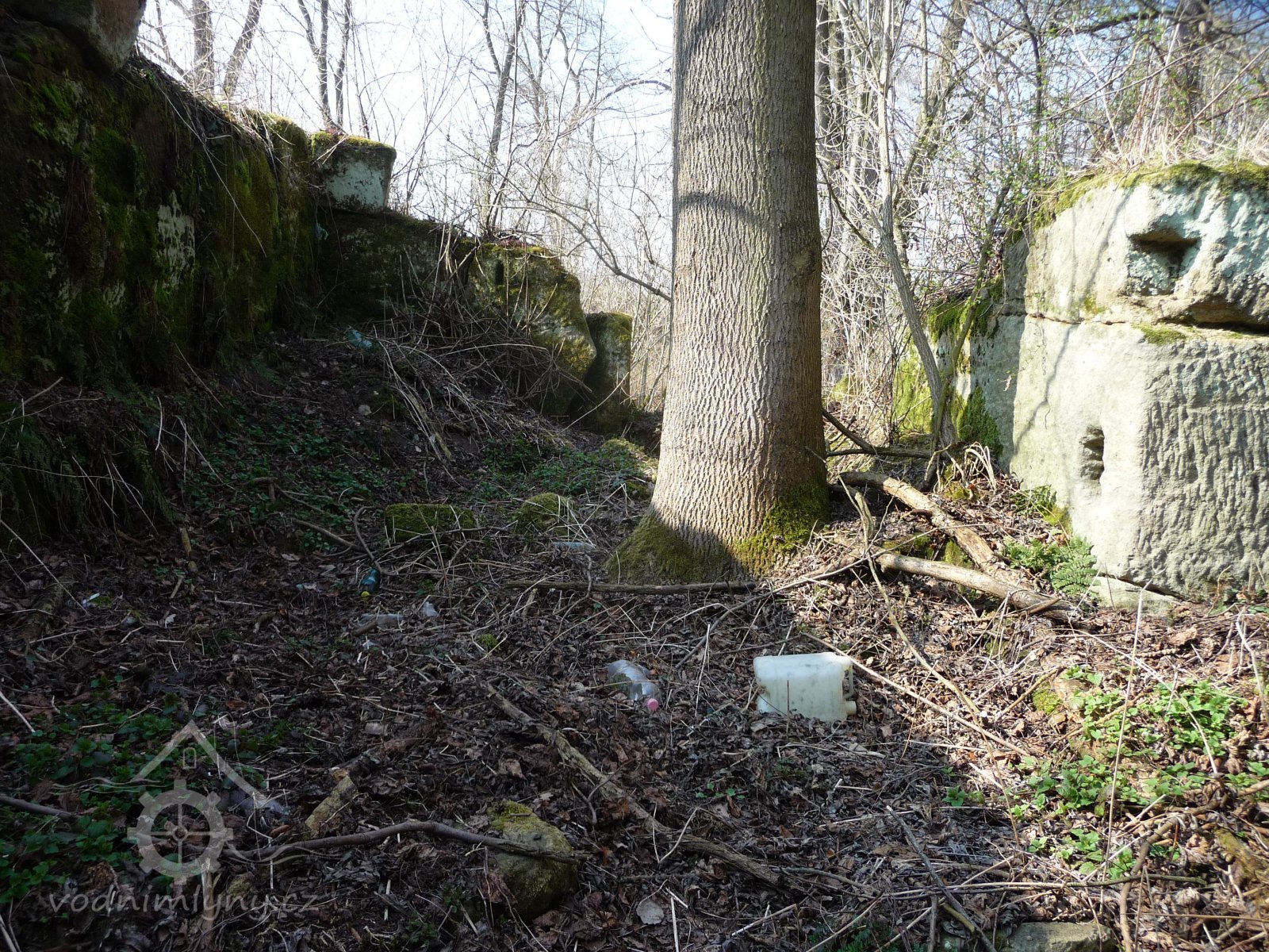 Námi sledovaný mlýn čp. 2 pod Dolanským rybníkem byl opatřen kolem na spodní vodu. Ještě v roce 1930 byl funkční, do současnosti se však dochovaly pouze části jeho staveb vysekané v pískovcovém podloží. Náhon mlýna byl do mlýnské lednice prosekán pískovcovým masivem, tvořícím hráz rybníka. Lednice byla také zcela zahloubena v pískovcovém podloží. Severní stěnou lednice byl proražen uzavíratelný vstup a otvor pro horizontální hřídel, která pokračovala do mlýnice. Ta byla horizontálně zahloubena do pískovcového podloží až do úrovně mlecí podlahy, stěny byly doplněny mohutnými pískovcovými kvádry. V mlýnici jsou jasně patrné stopy po zahloubení podkolí a po přisazení mlýnské hranice ke skalní stěně. Mlýnice byla schodištěm propojena s obytným čtyřprostorovým podlažím stavby, umístěným na úrovni terénu nad mlýnicí i lednicí. V těsném sousedství mlýna jsou v pískovcovém podloží zahloubeny dvě hospodářské prostory a jedna sezónně obytná. Ta je na vnitřním pilíři datovaná letopočtem 1813 a patrně sloužila k ubytování mlynářské chasy.