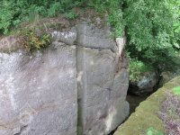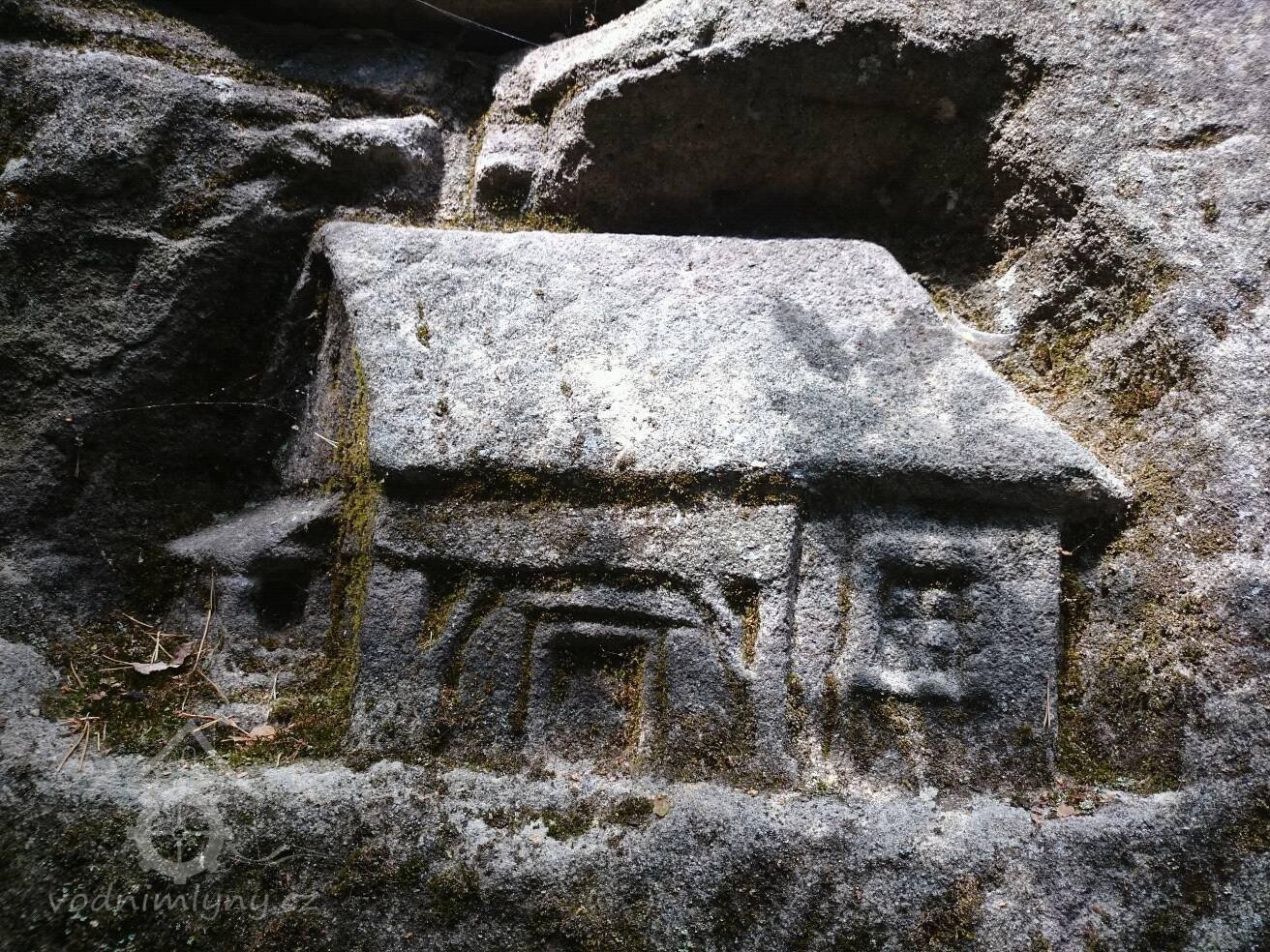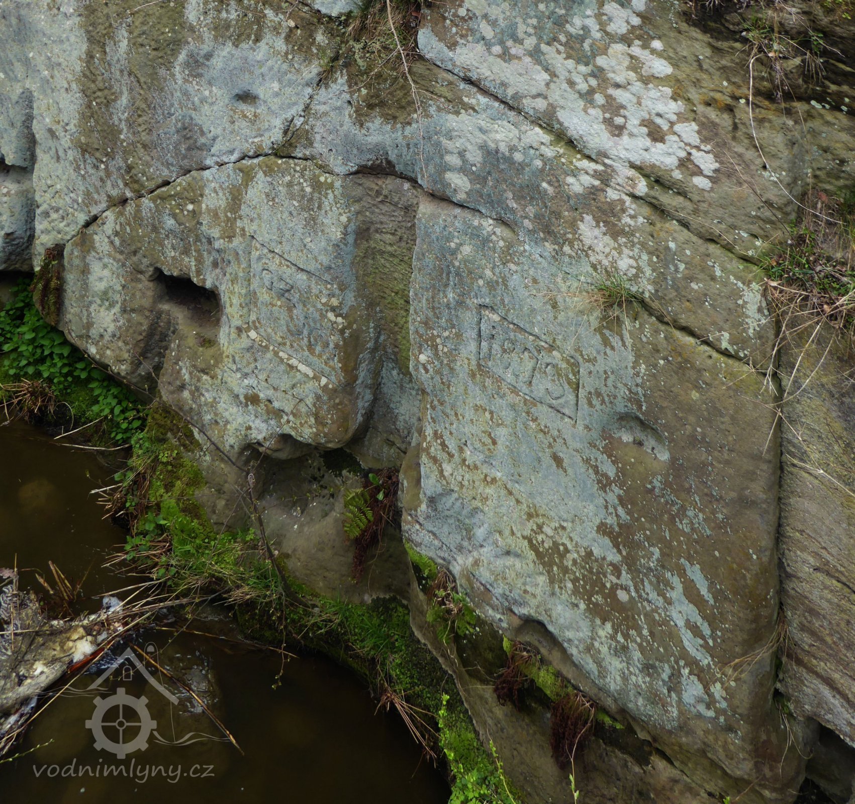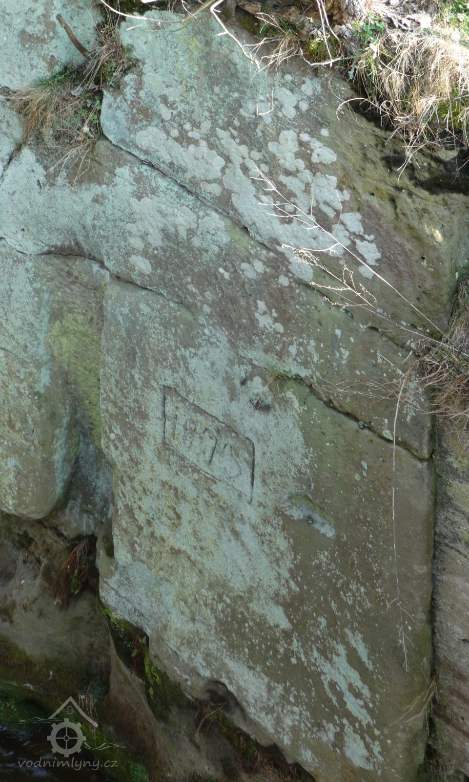 Datace lze nalézt i na dalších místech areálu mlýna. Nad výpustí vody z lednice je špatně čitelný letopočet 1700 (?) a na stěně strouhy, prosekané v sousedství mlýna skalním hřbetem, je v široké kartuši dobře patrný nápis GZ 1671. Strouha, která ústí do tůně pod mlýnem, je v sousedství stop po uzavření stavidly signována W. 1873. Do zmíněné tůně je zaústěna také druhá výše položená strouha, která sloužila k zachycení povodňové vody.