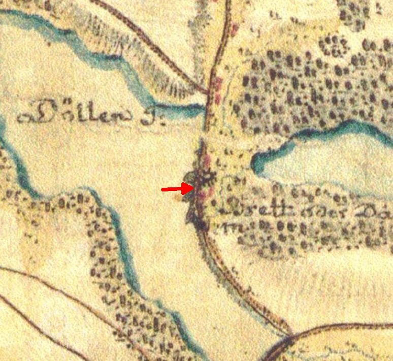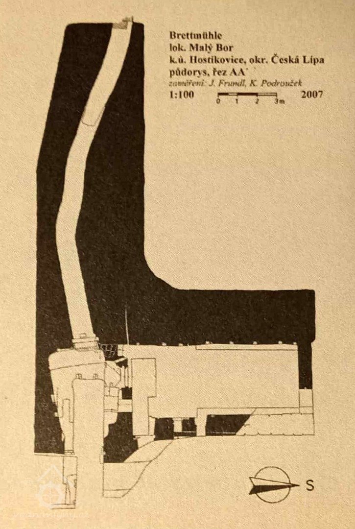 Další mlýn, který stál na Bobřím potoce v katastru obce Hostíkovice, je na prvním vojenském mapování zakreslen s popisem „Brett oder Dam Mühle“. V 19. století jeho jméno přejal jiný blízký mlýn o třech vodních kolech, dříve Panský („Herrn Mühle“), poháněný vodou Hrázského rybníka. Tento mlýn čp.1, modernizovaný Francisovou turbínou, byl v provozu ještě v období první republiky.