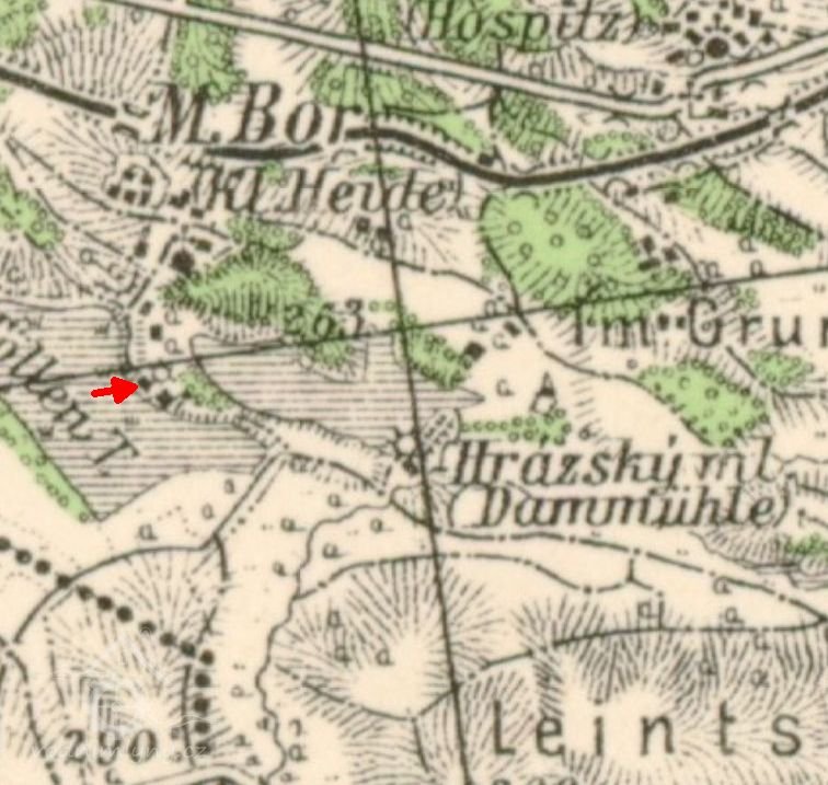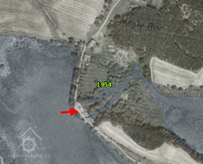V roce 1930 byl majitelem mlýna Aug. Schiffner, Malý Bor 2. Potok se nazýval Bieberbach.