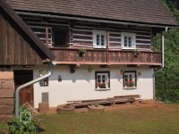 Nynější patrová chalupa (původně celoroubená s ozdobným štítem) vznikla zřejmě na začátku 19. století. Jižní štít byl podle zápisu na záklopě vztyčen tesařem Jiřištěm z Nové Vsi v roce 1813, severní štít v roce 1815. V klenbě valeného sklepa byl klenák s letopočtem 1734.