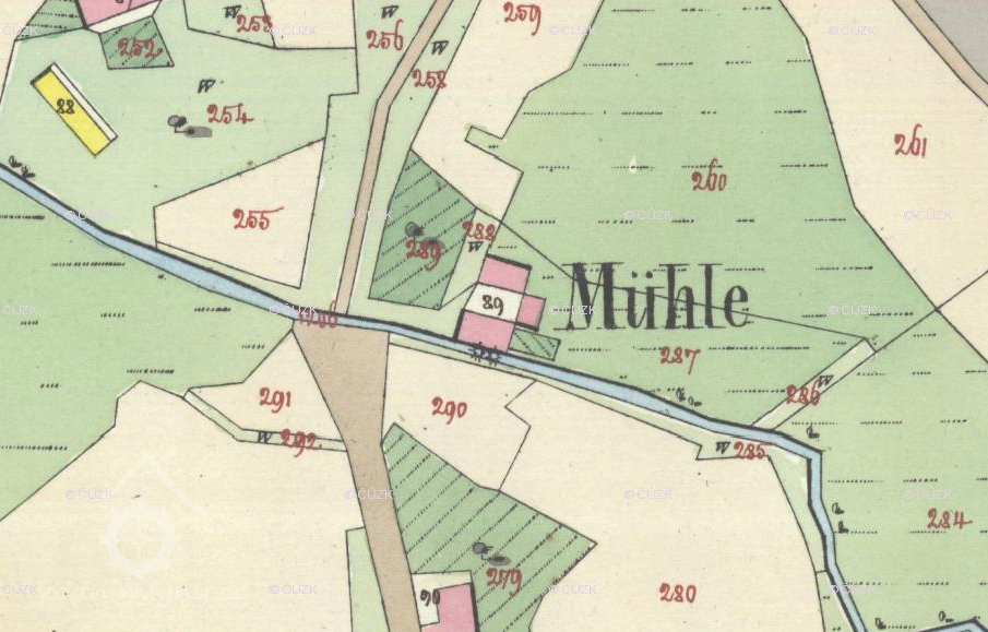 Mlýn je zakreslen již na mapě I. vojenského mapování.