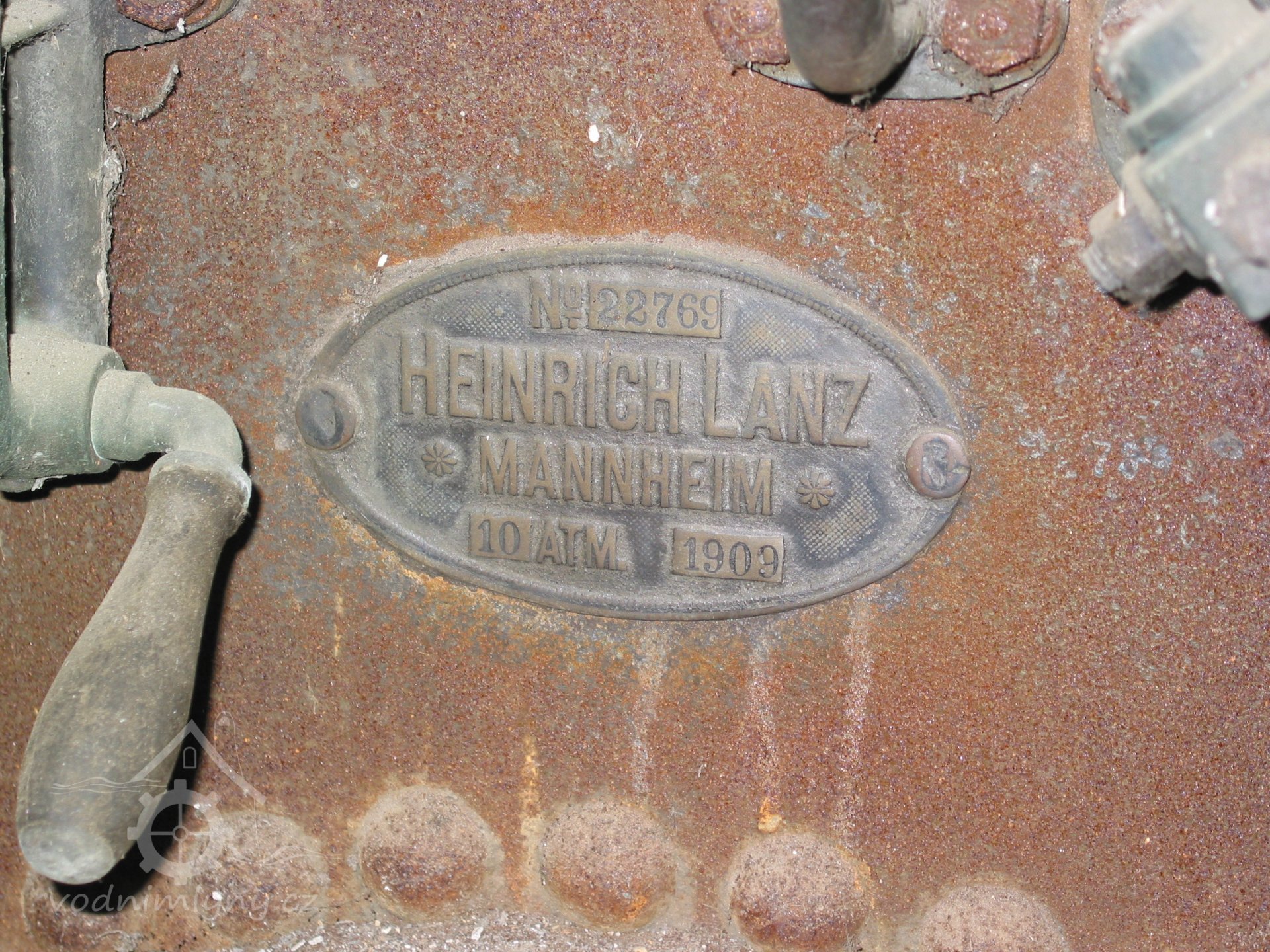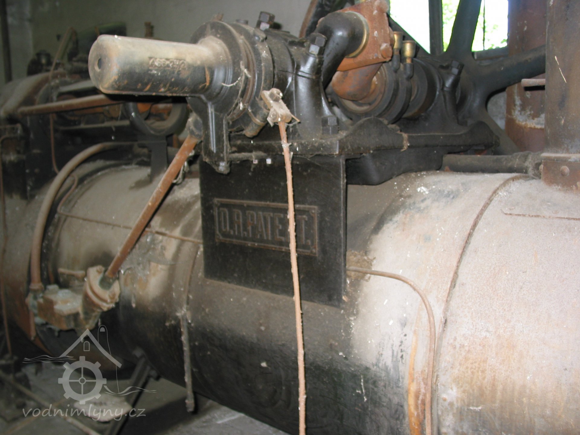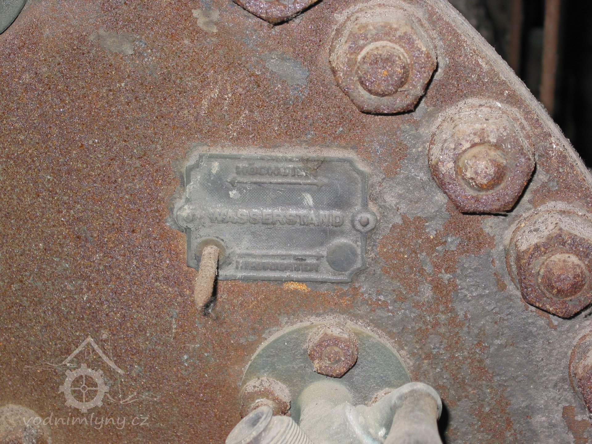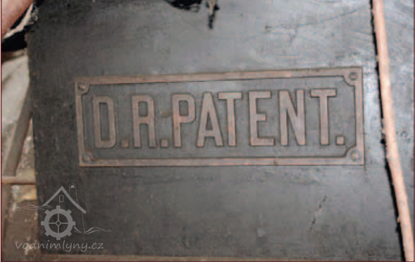 Štítek Deutsches Reichspatent, 2013, © Vodní mlýny na Frýdecko-Místecku, (Prvky na obrázku: značka výrobce na pomocném motoru)