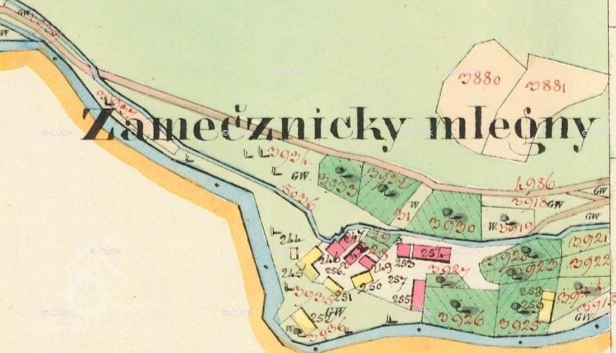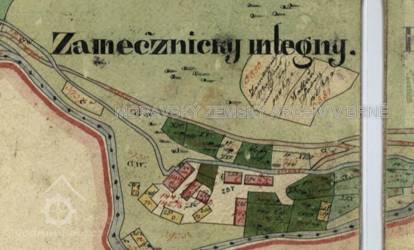 Podle informace syna posledního mlynáře Josefa Zámečníka mlýn patřil současně třem mlynářům - Zámečníkovi, Vaňkovi a Režňákovi.