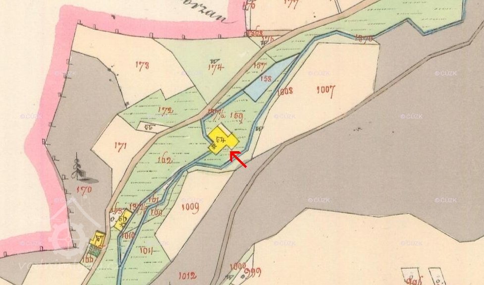 1856: Joseph Brasda besitzt 158 Klafter Bauareal, 2 Joch 513 Klafter Äcker und