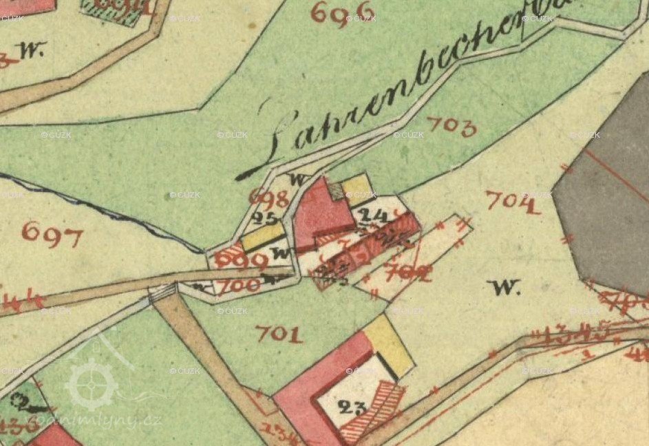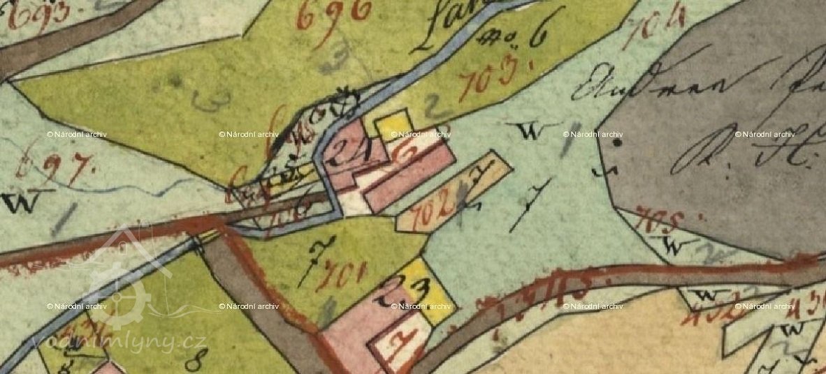 V r. 1930 provozoval mlýn a pilu Fr. Hable, původní č.p. bylo 6.