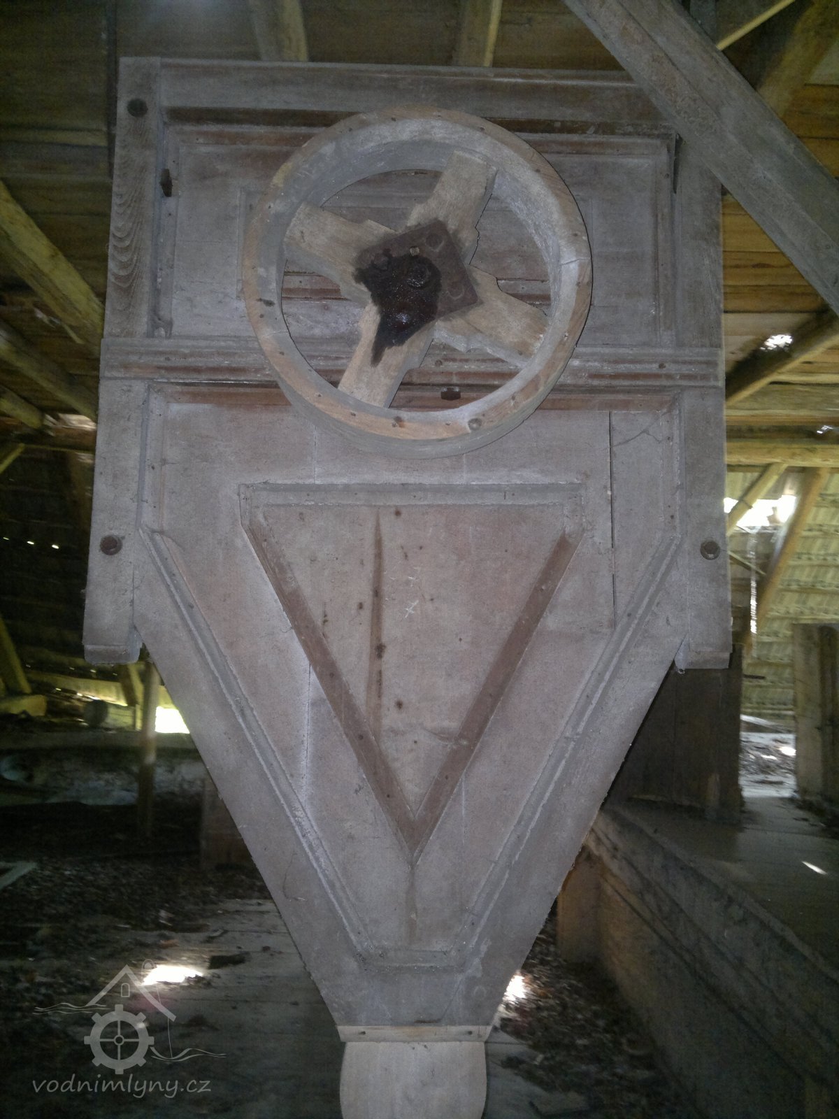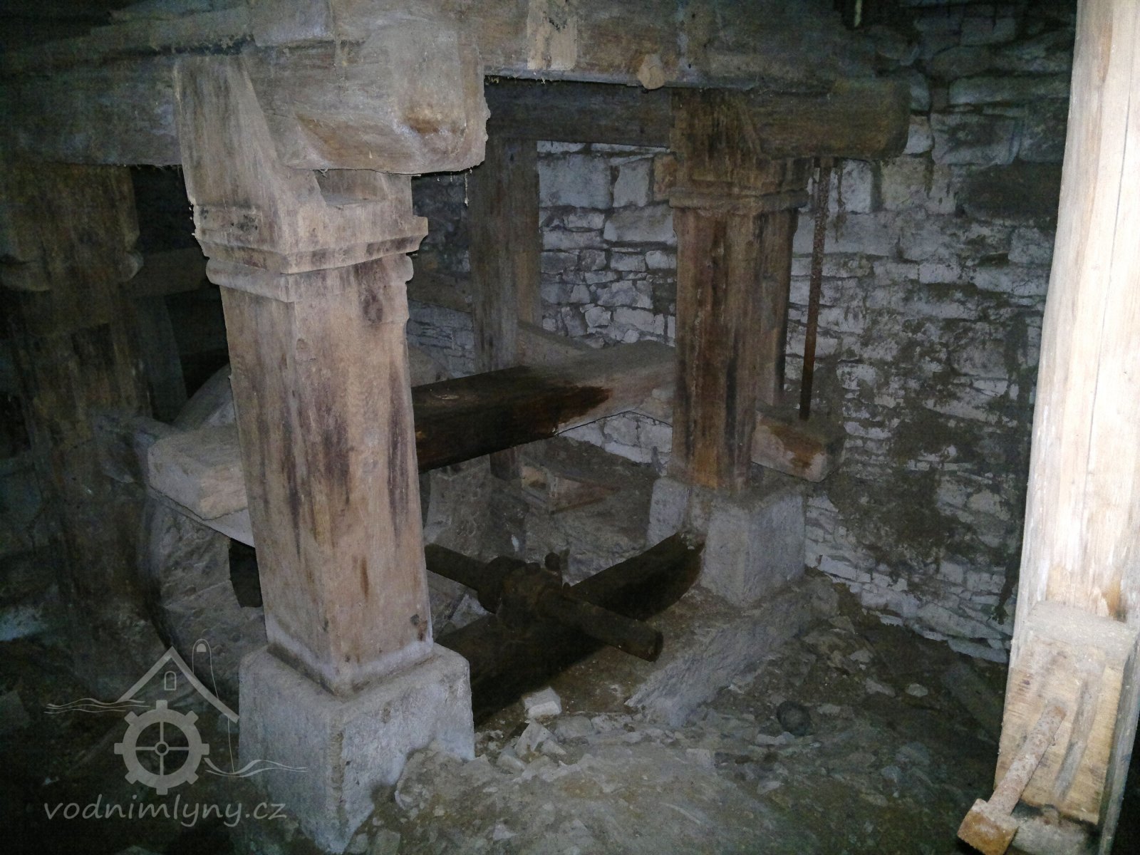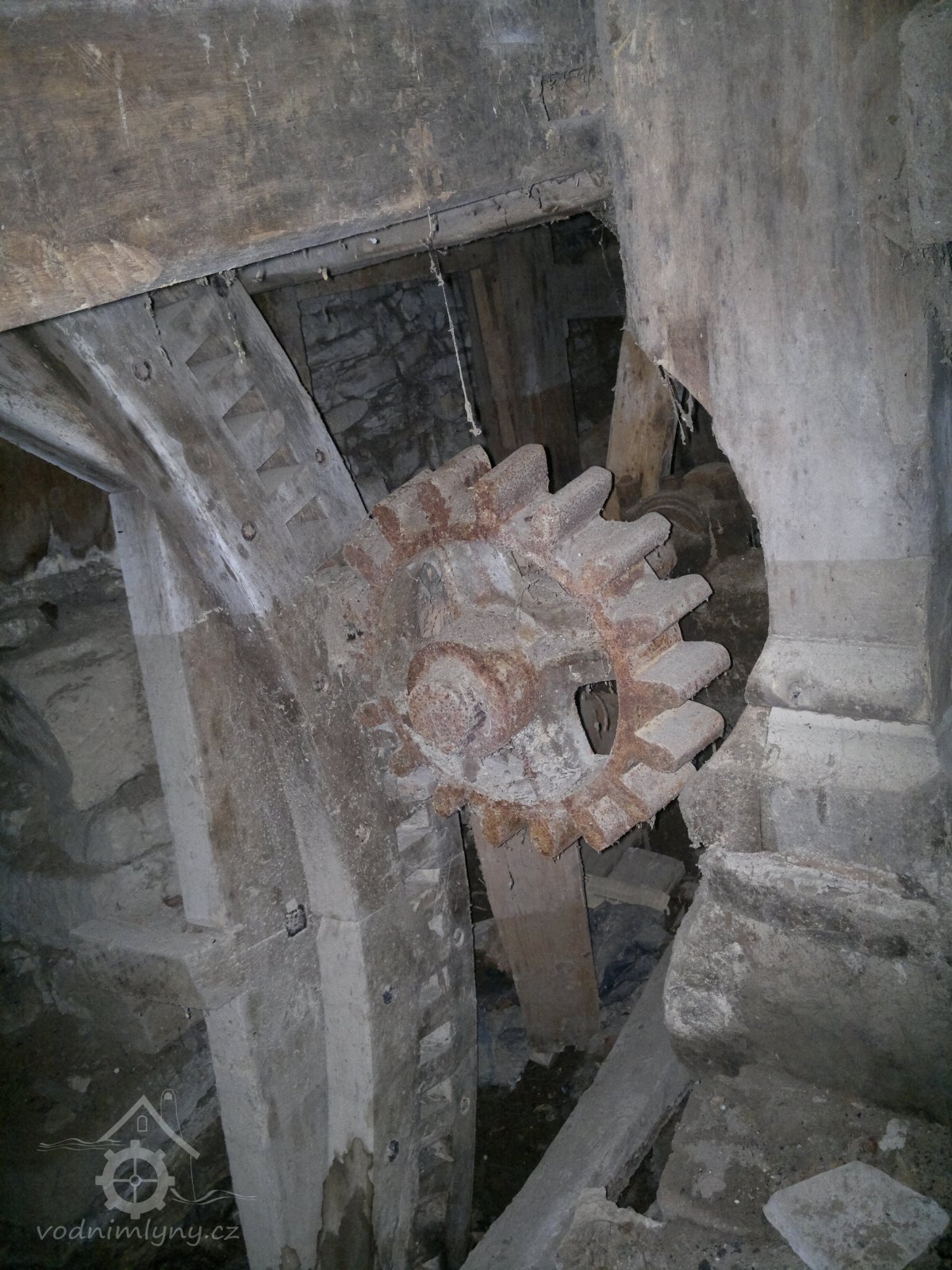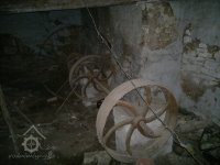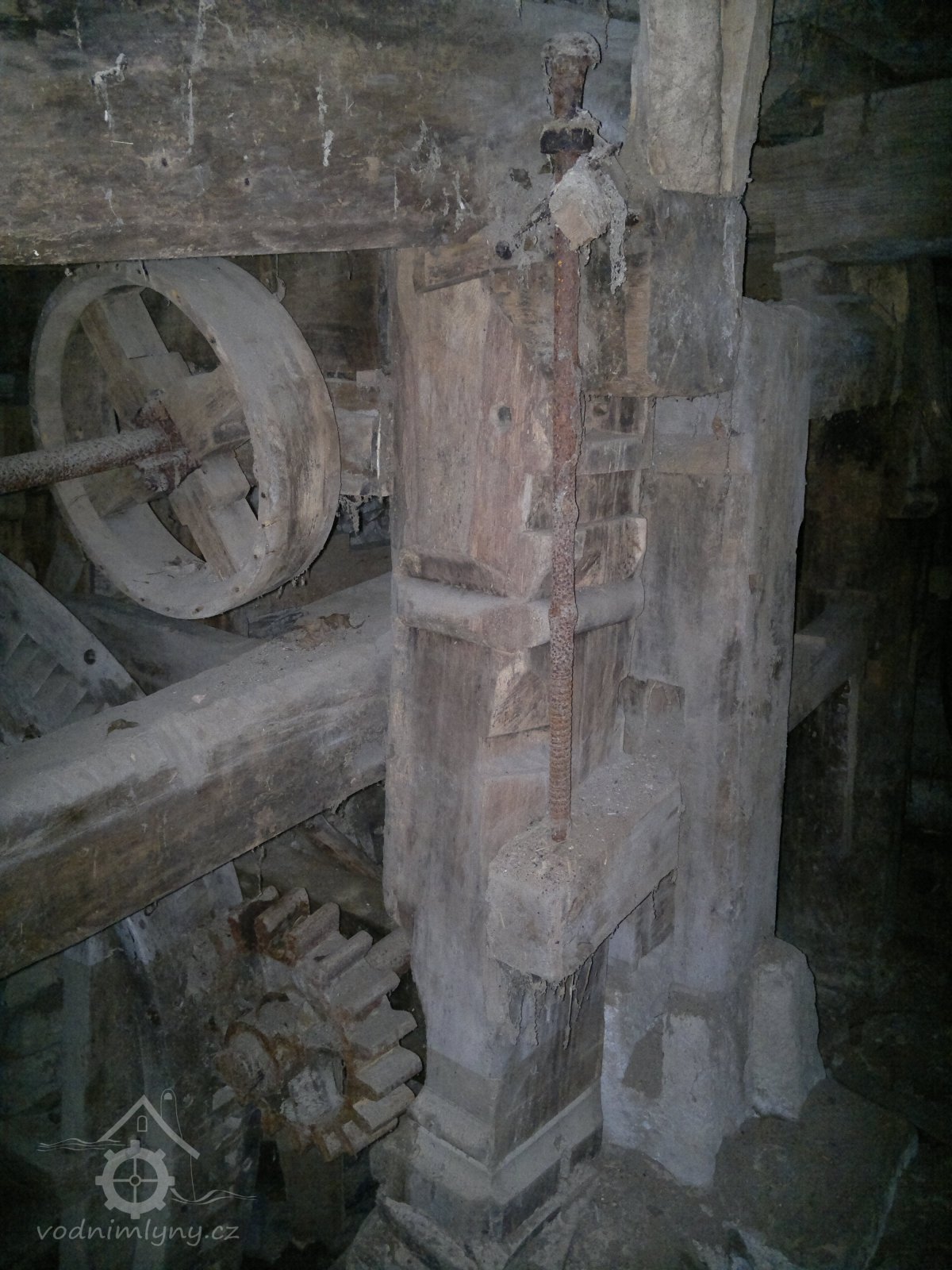 podkolí, mlýnská hranice, 2011, © D. Veverka, (Prvky na obrázku: transmise, řemenice, převody)