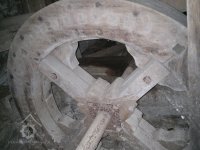 hnací řemenice a zároveň setrvačník a malé paleční kolo, 2011, © D. Veverka, (Prvky na obrázku: transmise, řemenice, převody)