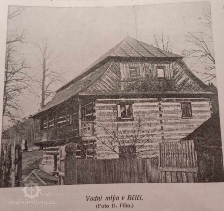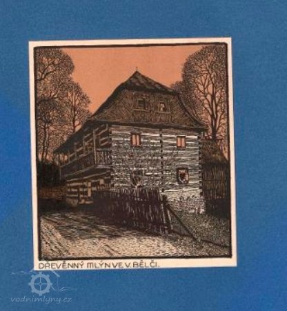 Roubená patrová budova na břehu rybníka asi 1,5 km od obce Běleč n . 0. Střecha mansardová s polovalbami krytá lepenkou. V průčelí domu v každém patře po dvou dvoudílných oknech. Lomenice v současné době již neexistuje, protože je spolu s přední polovinou střechy zřícená. Podél podél­né části ve dvoře v patře dřevěná pavlač přístupná z patra. Vchod do budovy pouze ze dvore při­bližně ve třetí třetině domu. Vchod vede přímo do mlýnice, z které vede schodiště do patra a vpravo vchod do obytné části domu.