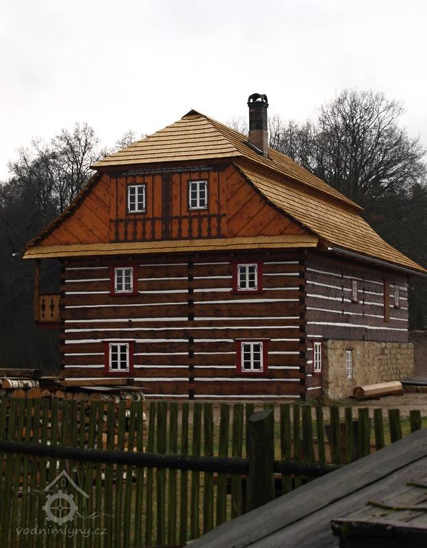 Lidová patrová roubená architektura s vyřezávanou lomenicí a pavlačí, typ patrového domu z oblasti Nové Paky, dat. 1807. Zbytky mlýnského vnitřního zařízení dodávají objektu navíc charakter technické památky.
