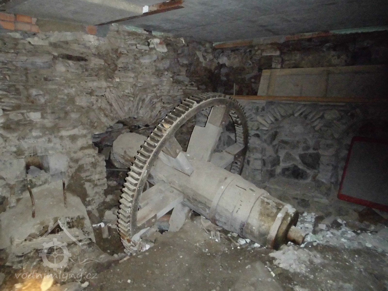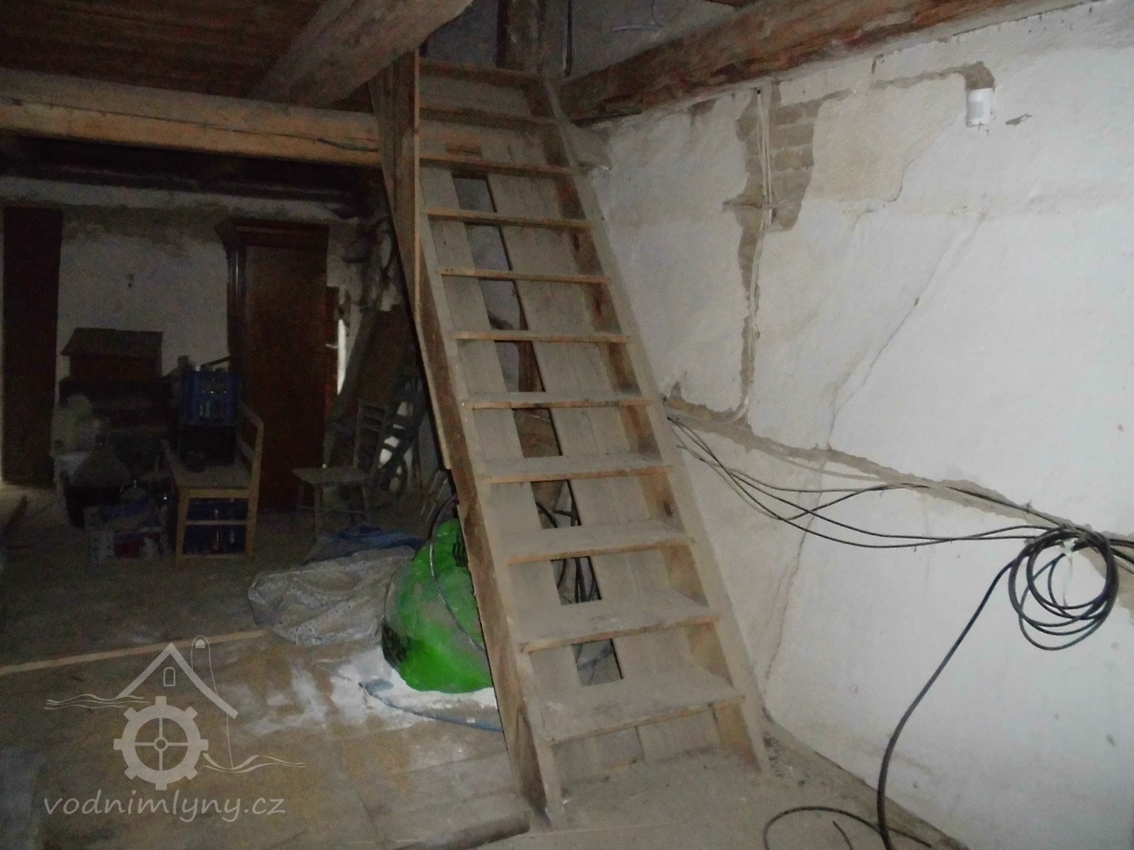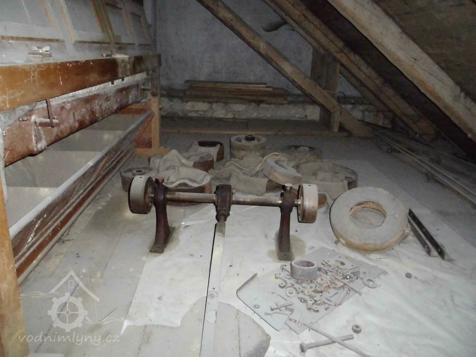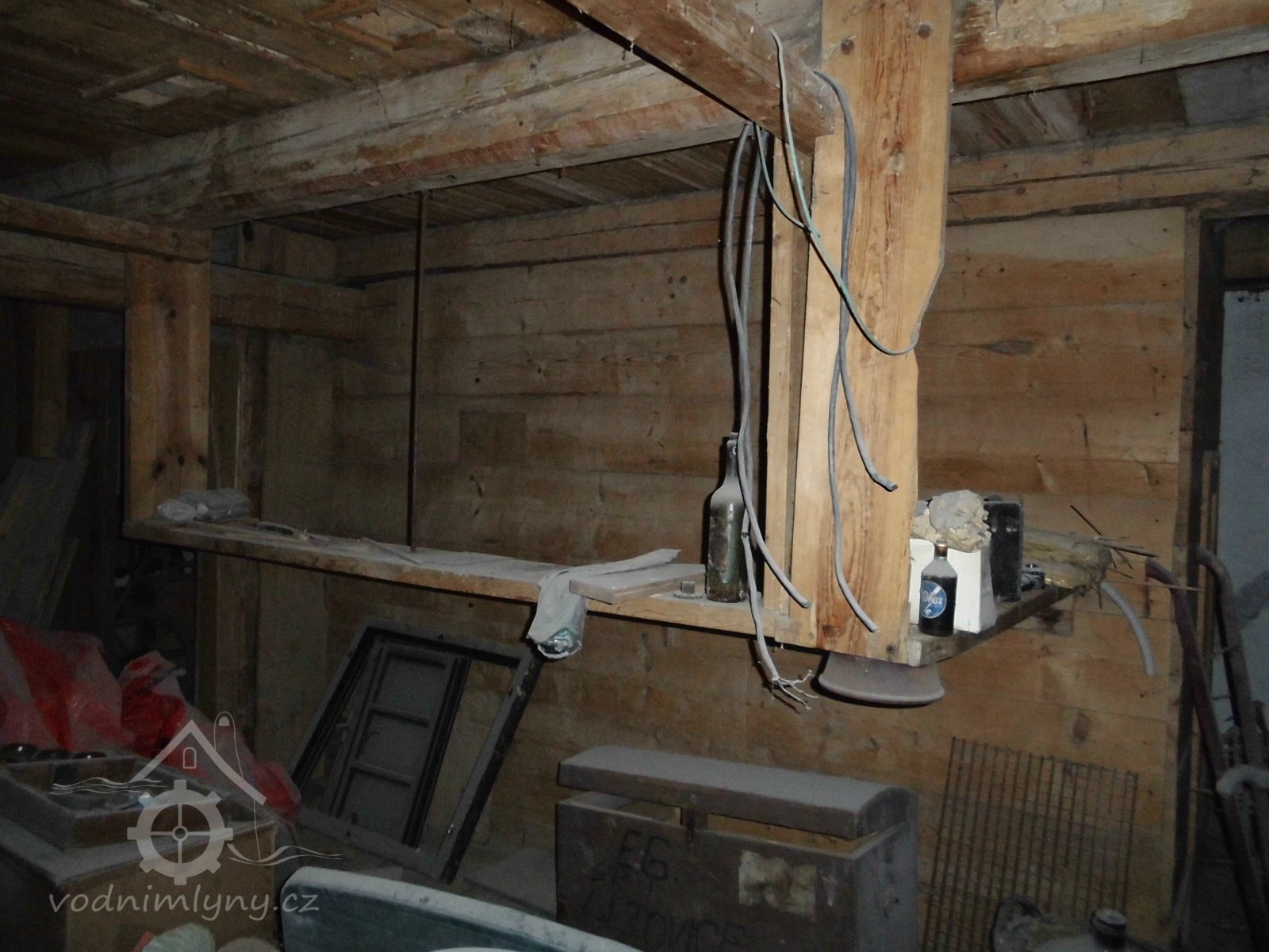 vodní kolo s výstrojem, 2 transmise s řemenicemi, 1 dynamo s instalací