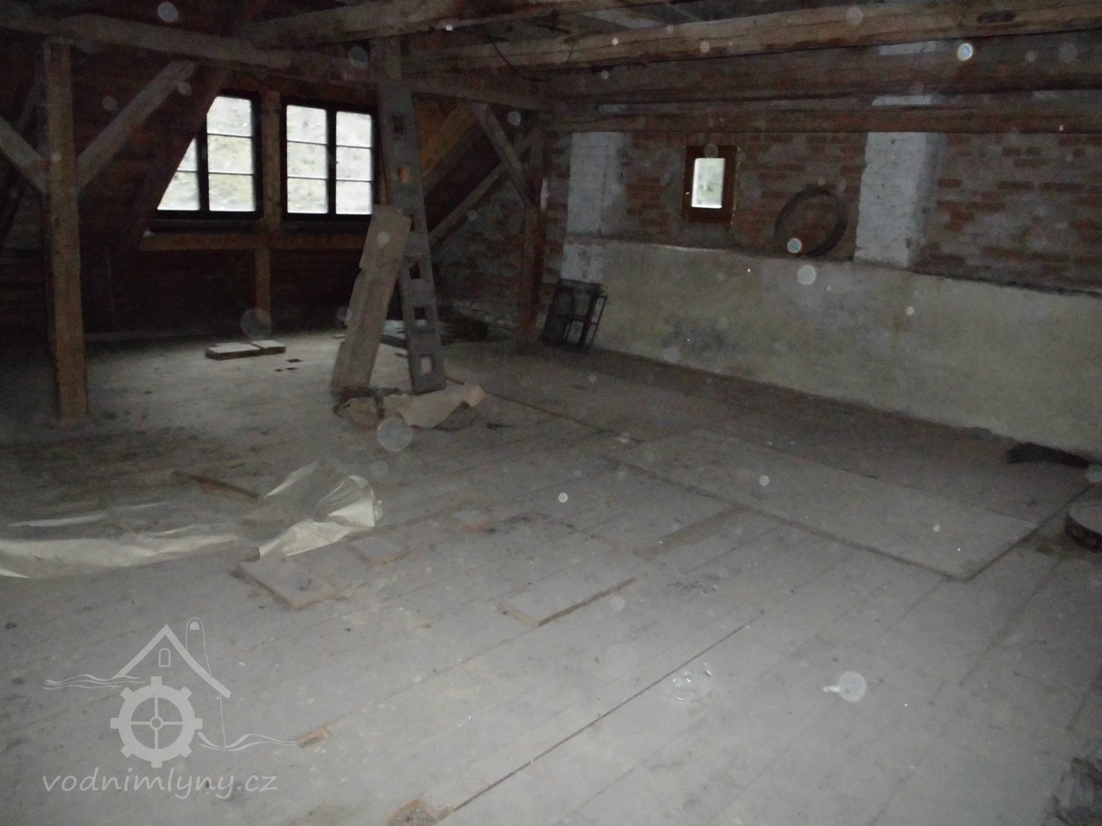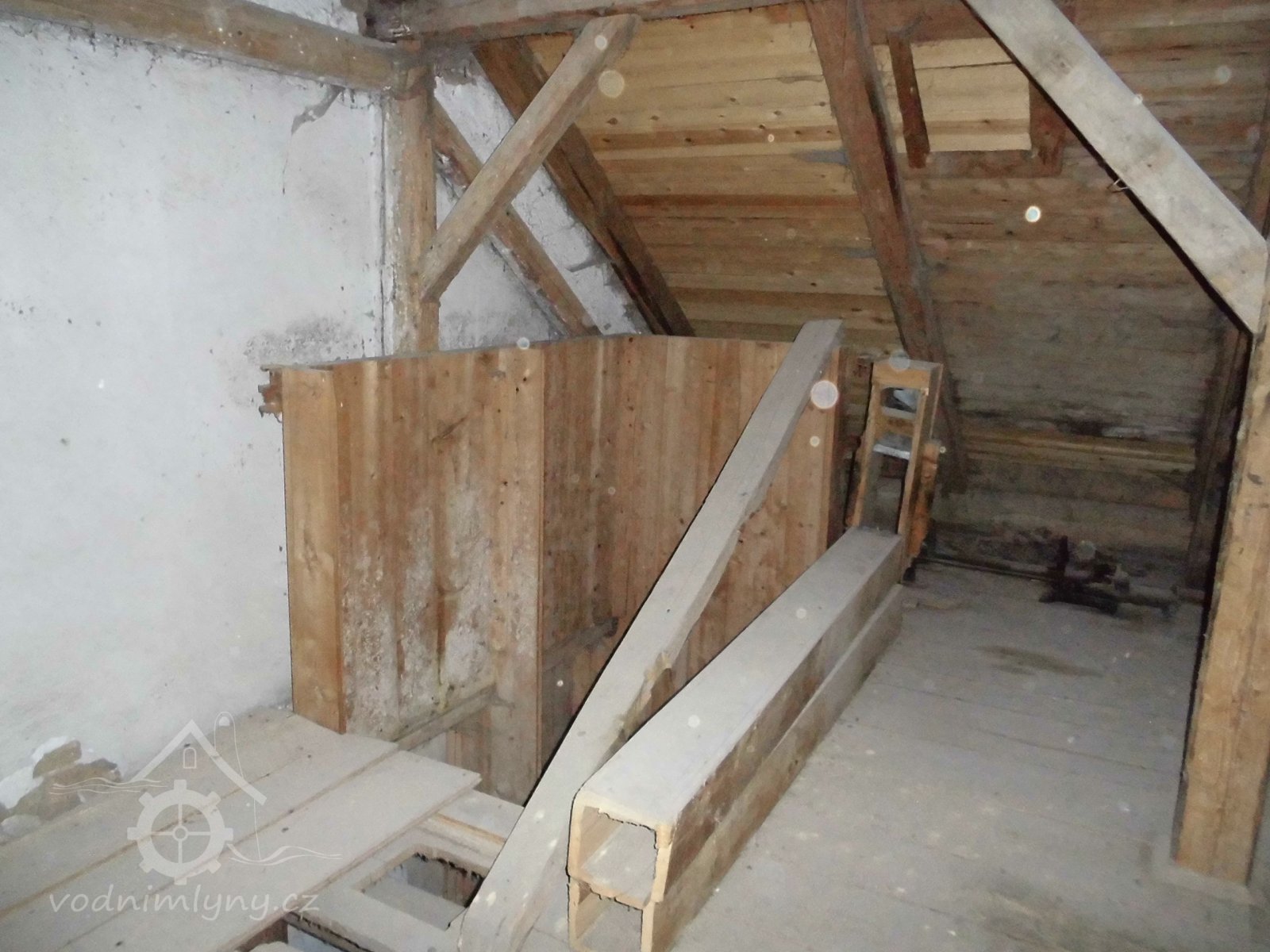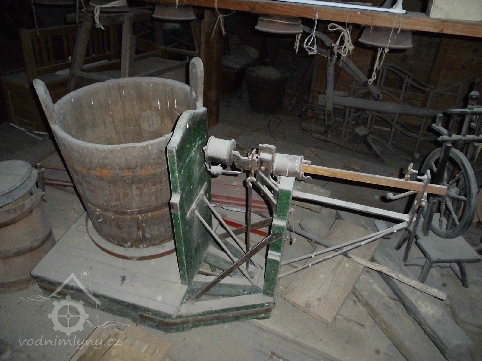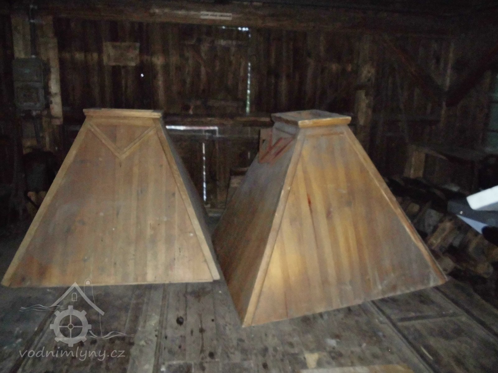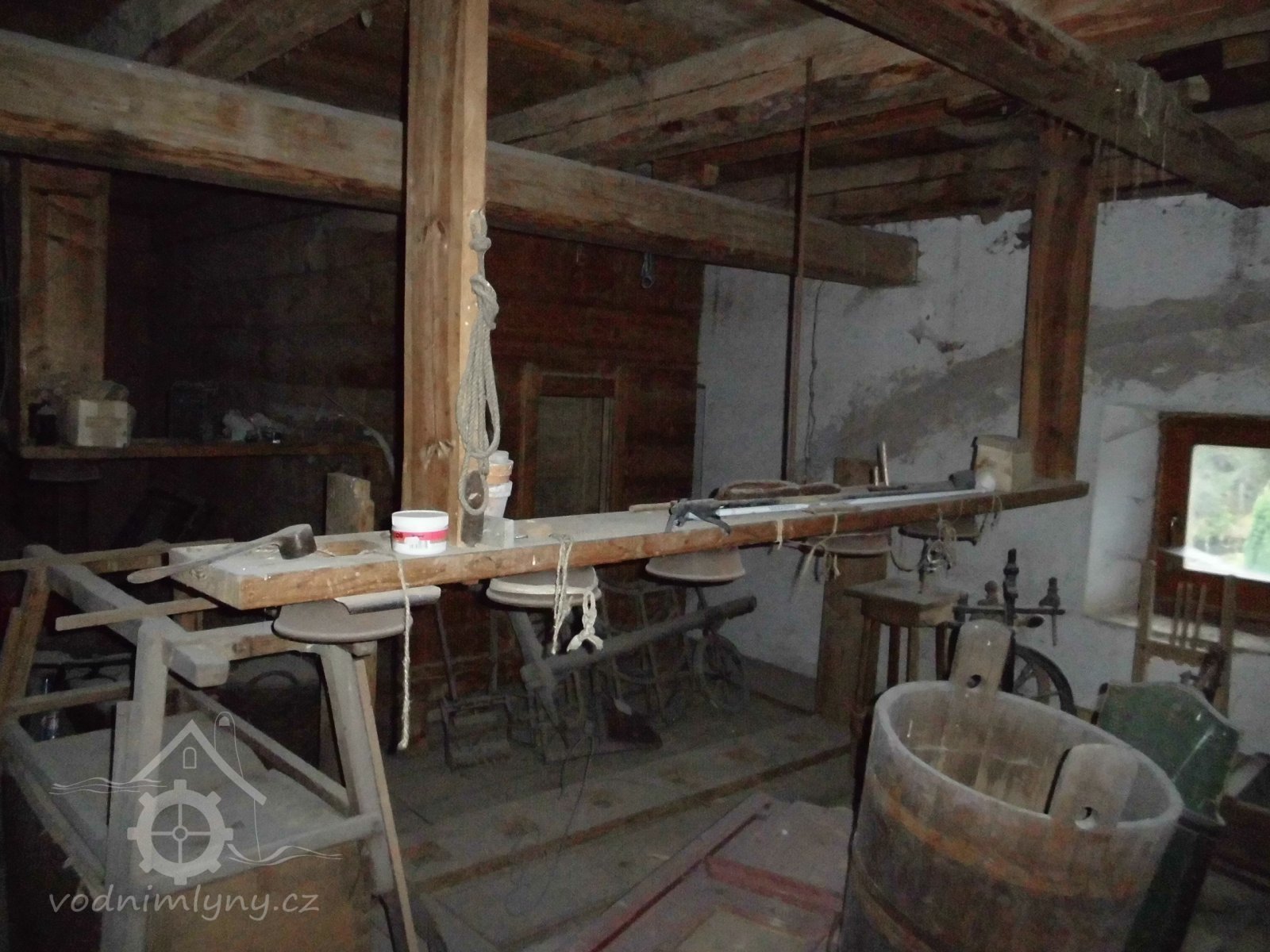 vodní kolo s výstrojem, 2 transmise s řemenicemi, 1 dynamo s instalací