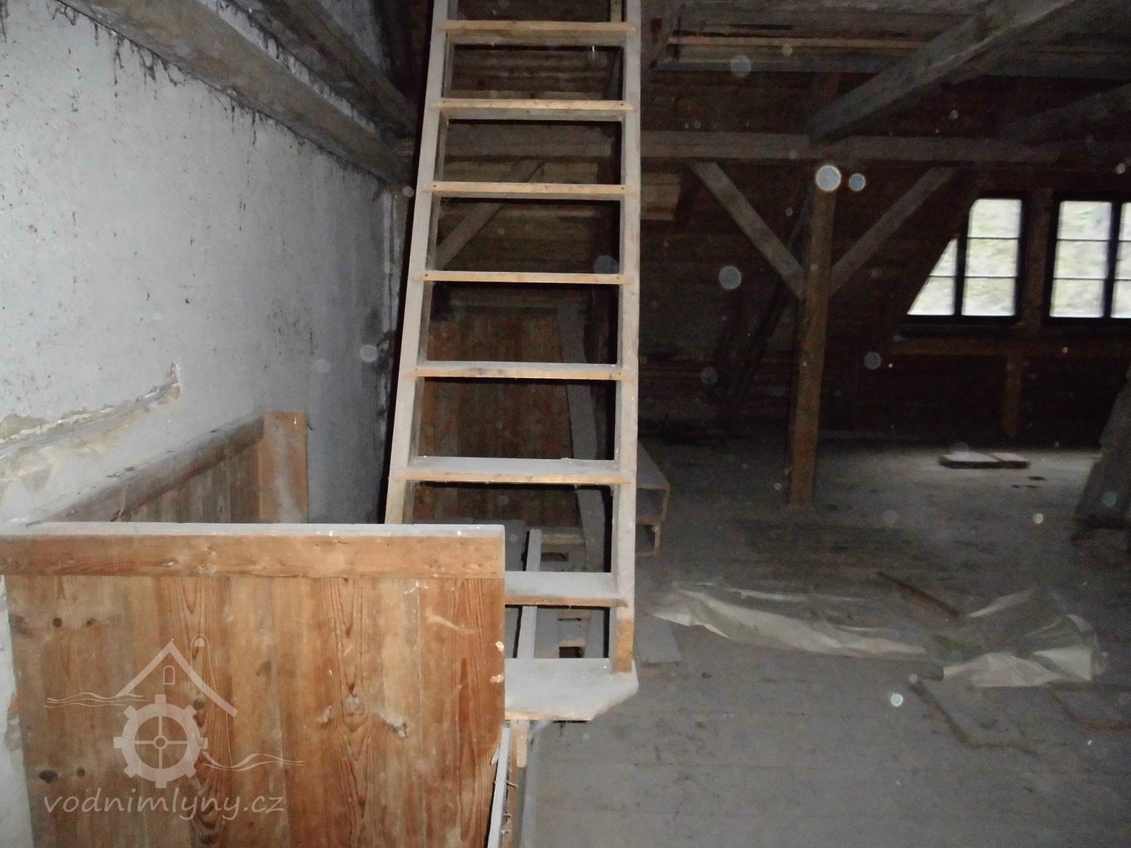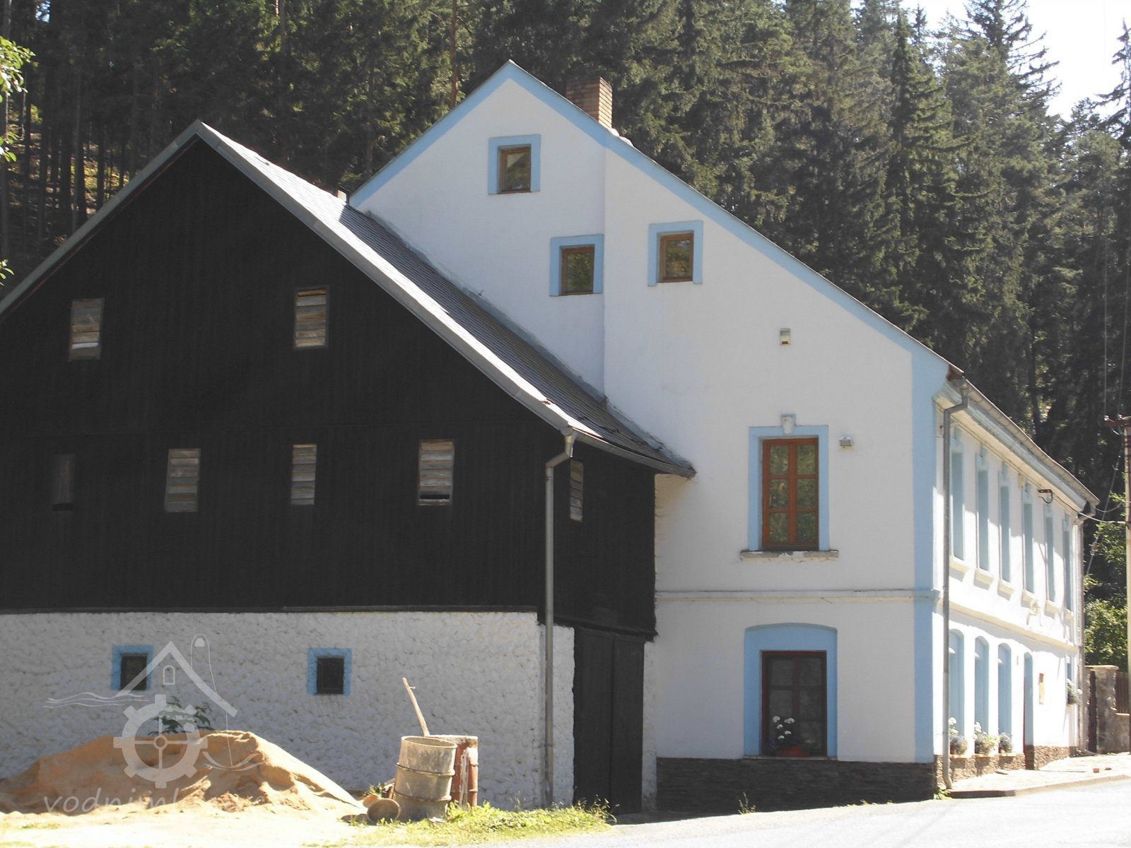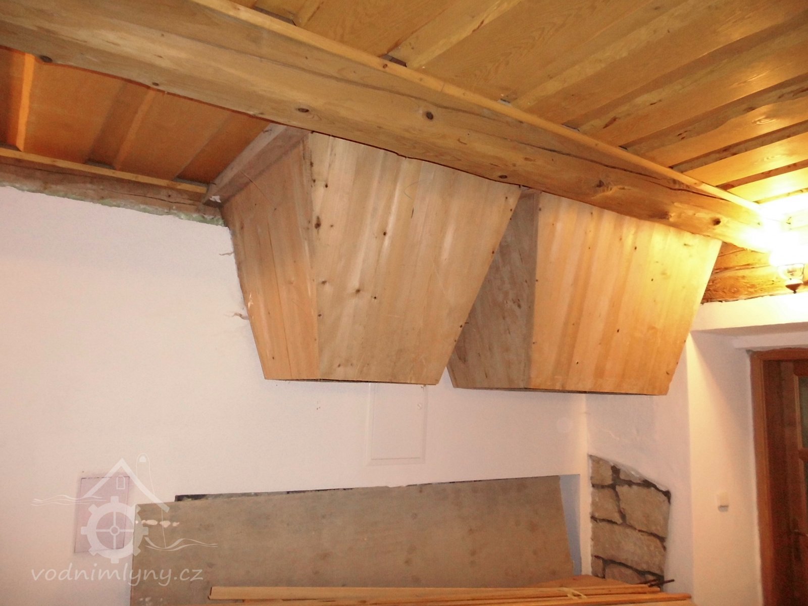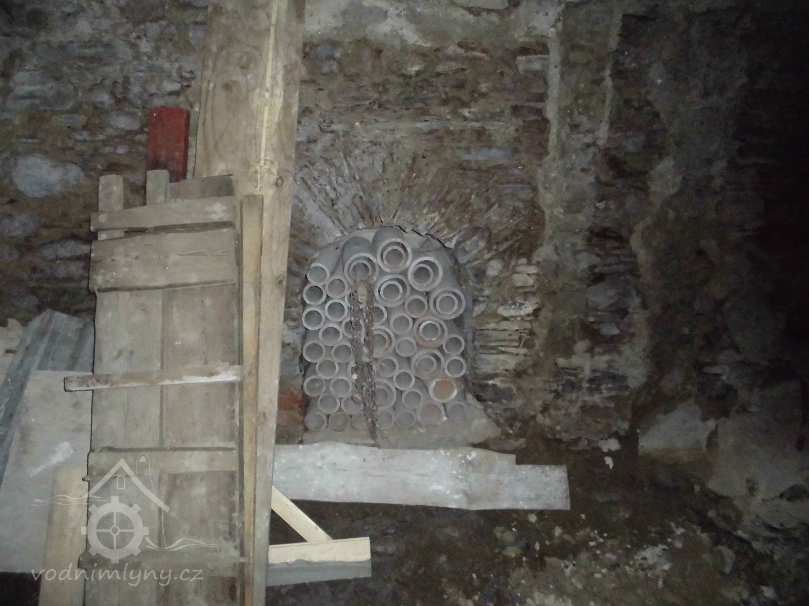 vodní kolo s výstrojem, 2 transmise s řemenicemi, 1 dynamo s instalací
