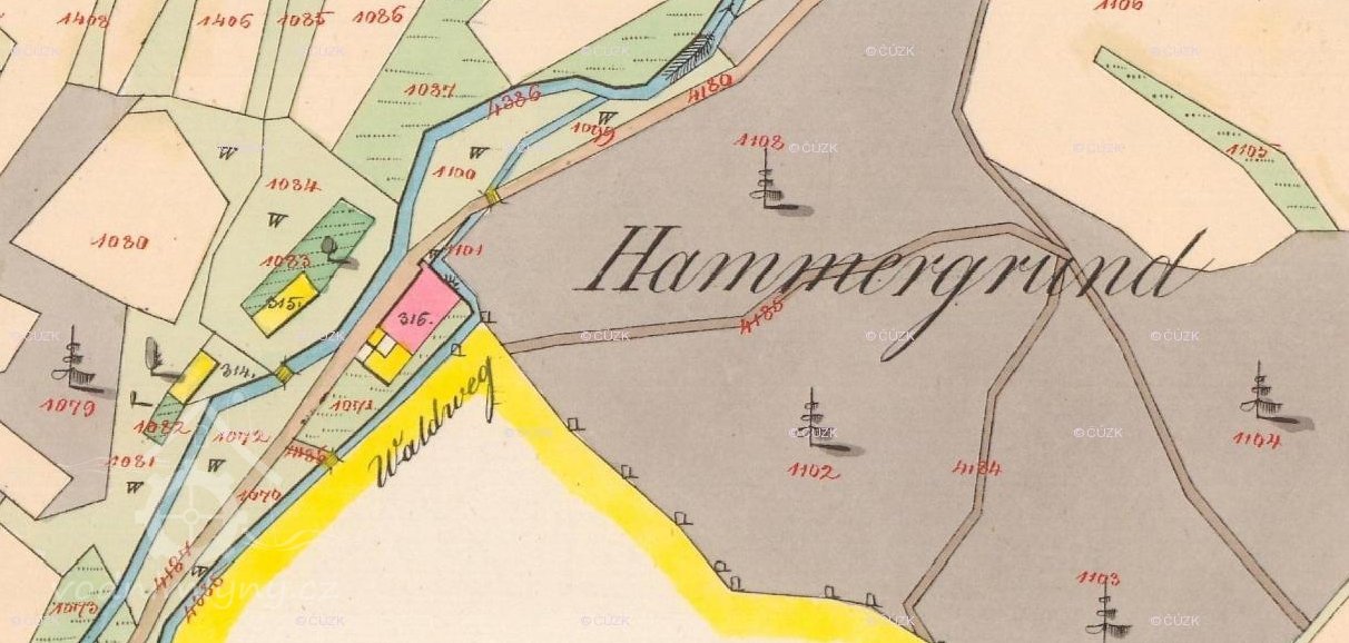 Založen po roce 1675 na místě hamru
