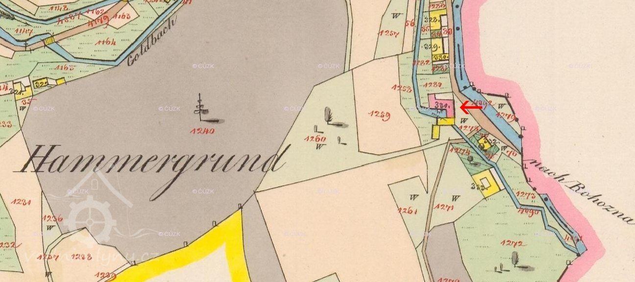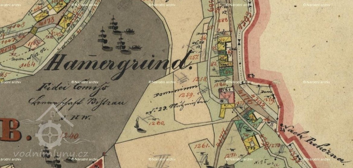 Potom byly hamry přeměněny v mlýn o dvou složeních. Roku 1687 koupil jej Jakub Koráb od Jana Paula Leopolda hraběte z Valderode za 450 kop grošů míšenských, které spláceti měl po 4 kopách ročně. Mělo tedy do úplného zaplacení uplynouti 112 a půl roku. Mimo toho do úplného zaplacení byl mlynář povinen každoročně odsypávati 50 strichů žita, všecko potřebné obilí pro vrchnost zdarma semleti a dle požádání zdejším poddaným přednostně před cicími jejich obilí semílati. Naproti tomu však vrchnost všechny berně sama zapravovati bude, rovněž o ubytování vojska se sama postará, leč by mlynář z dobré vůle něčím přispěti chtěl. Všichni poddaní, kteří v tomto panském mlýně svoje obilí mleli, jsou povinni i nadále tak činiti a to pod pokutou a ztrátou obilí jinam vezeného. Konečně kdyby nynější majitel Jakub Koráb ten mlýn odprodati chtěl, musí k tomu od vrchnosti povolení míti. / Z knihy pozemků č. 14. strana 163-168./